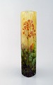 Daum Nancy art nouveau vase i mundblæst emalje kunstglas. Syreætset glas. Håndmalede røde blomster og grene i relief. Tidligt 1900-tallet.