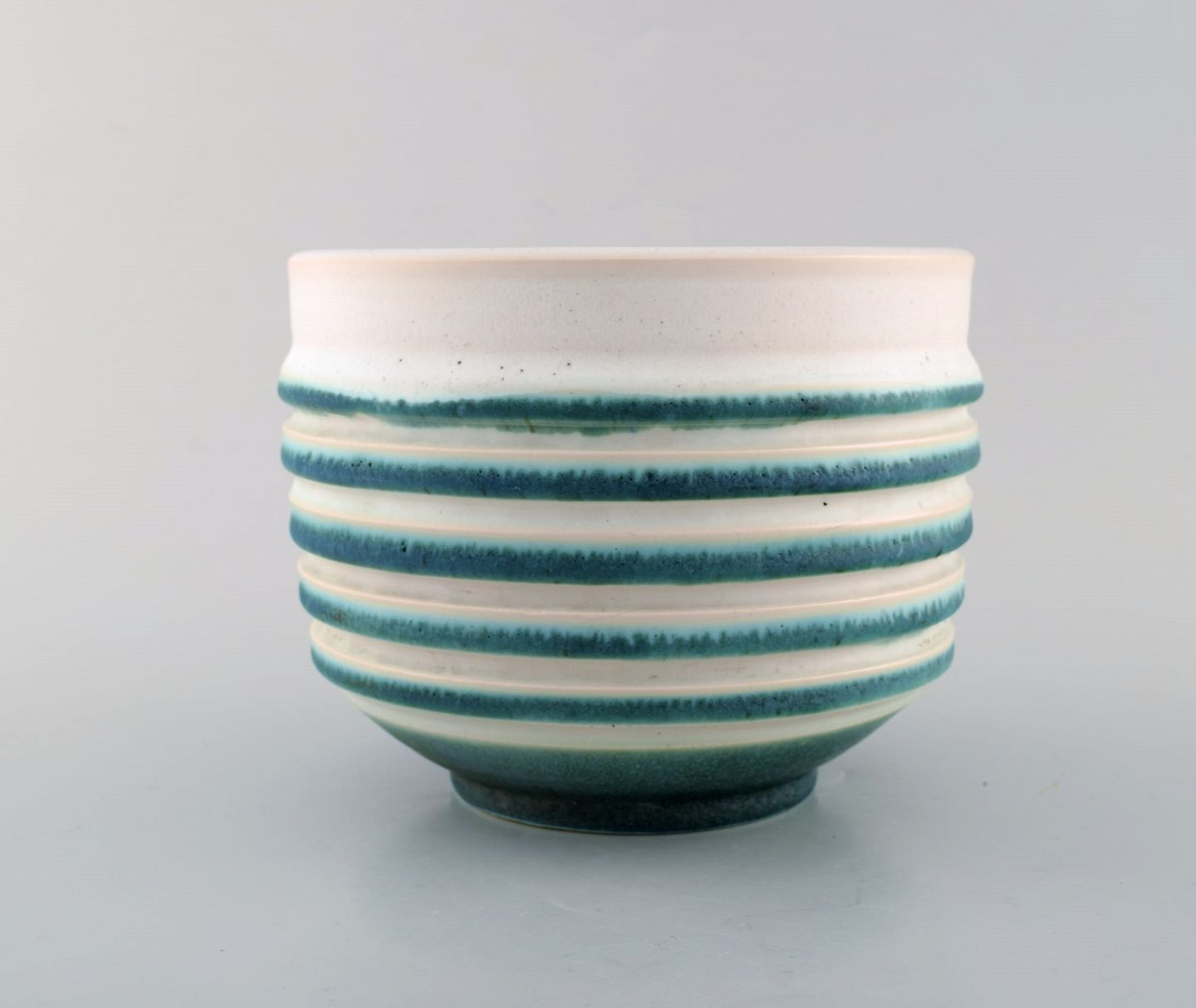 Charlotte Alix (1897-1987) Unika Sèvres vase i glaseret keramik. Smuk glasur i turkis nuancer. Dateret 1948. Måler: 18 x 13,5 cm. I flot stand, Signeret og dateret.