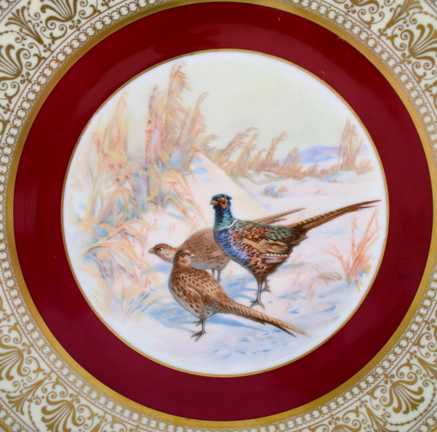 Thomas/Bavaria, Tyskland. Fem dekorationstallerkener med håndmalede jagtmotiver. 1930-50'erne. Fasaner, kronhjort, vildænder og grågæs. Måler: 27 cm. I flot stand. Stemplet.