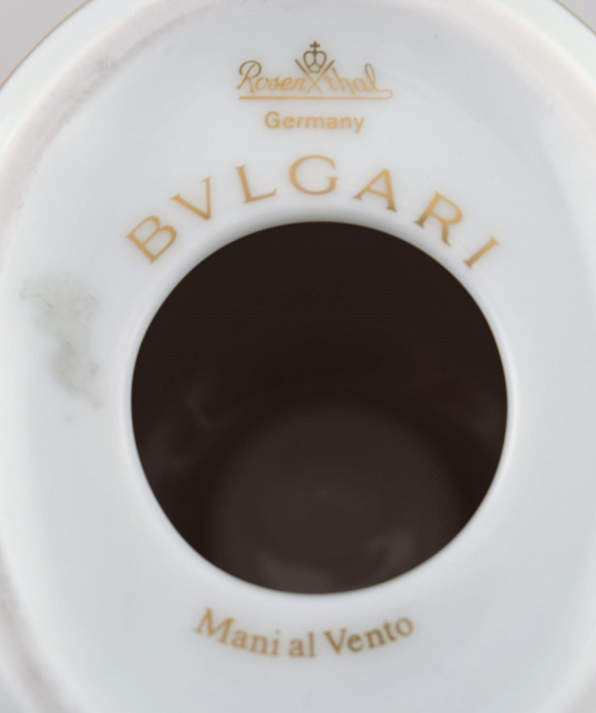 Bvlgari / Bulgari for Rosenthal. To "Mano al vento" lysestager i porcelæn. Orange glasur og gulddekoration. Sent 1900-tallet.