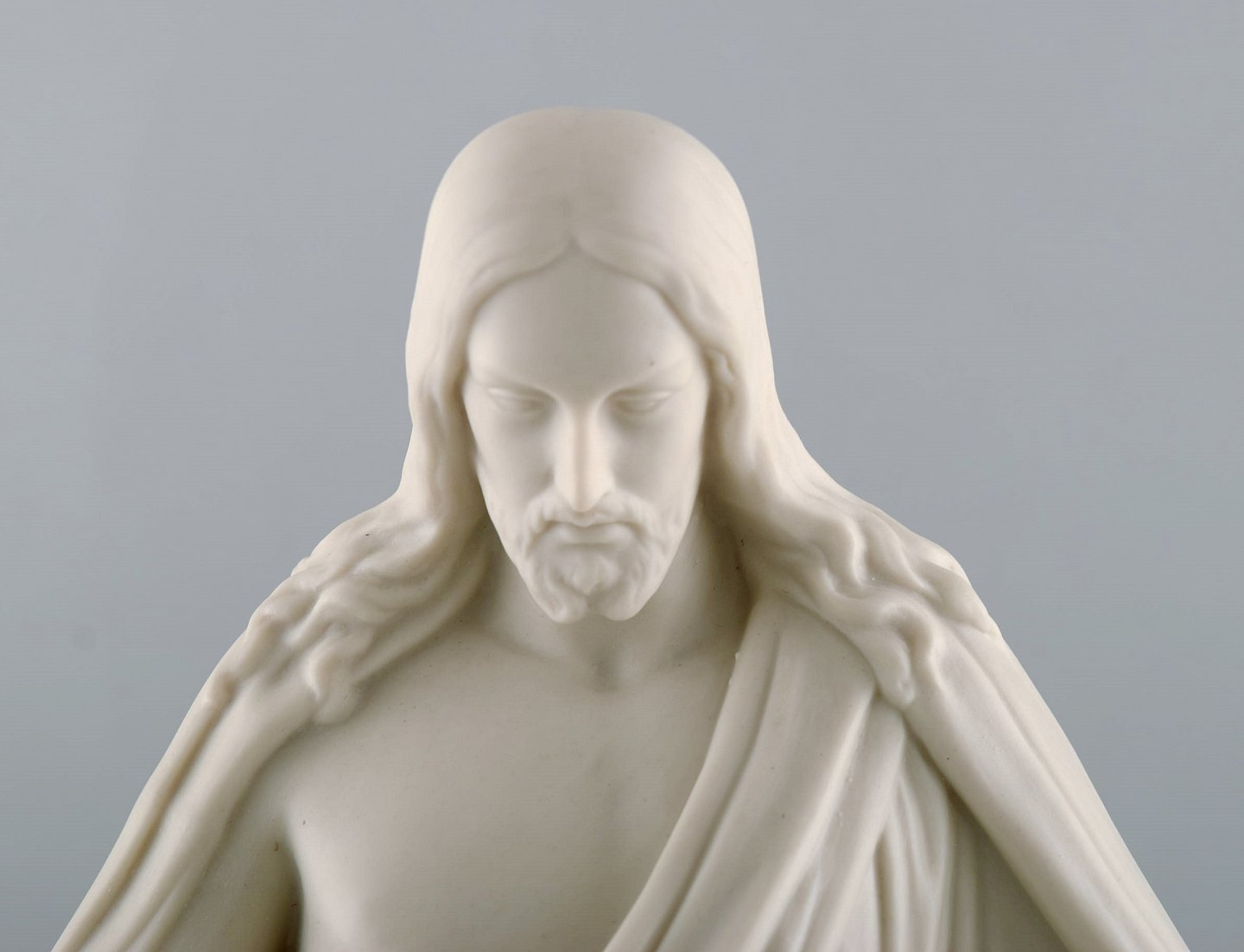 Gustafsberg / Gustavsberg, Sverige. Kristus figur i biscuit, dateret 1907. Måler: 30 x 19 cm. I flot stand. Stemplet: Gustafsberg 07.