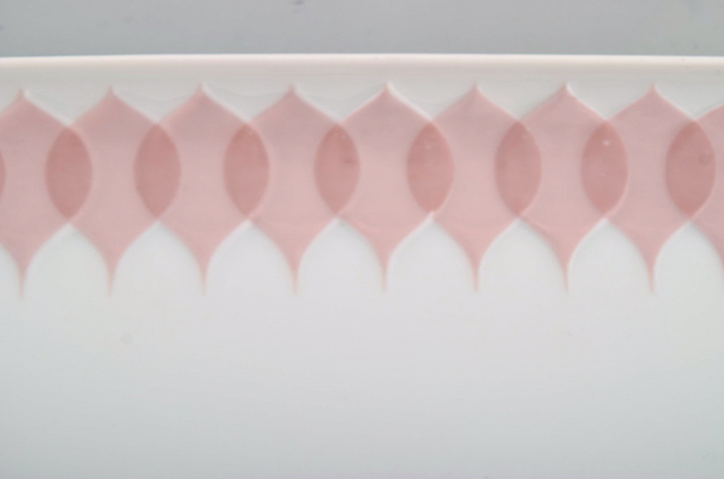 Bjørn Wiinblad for Rosenthal. "Lotus" porcelænsservice. Aflangt fad dekoreret med lyserøde lotusblade. 1980'erne. Måler: 34 x 15 cm. I flot stand. Stemplet.