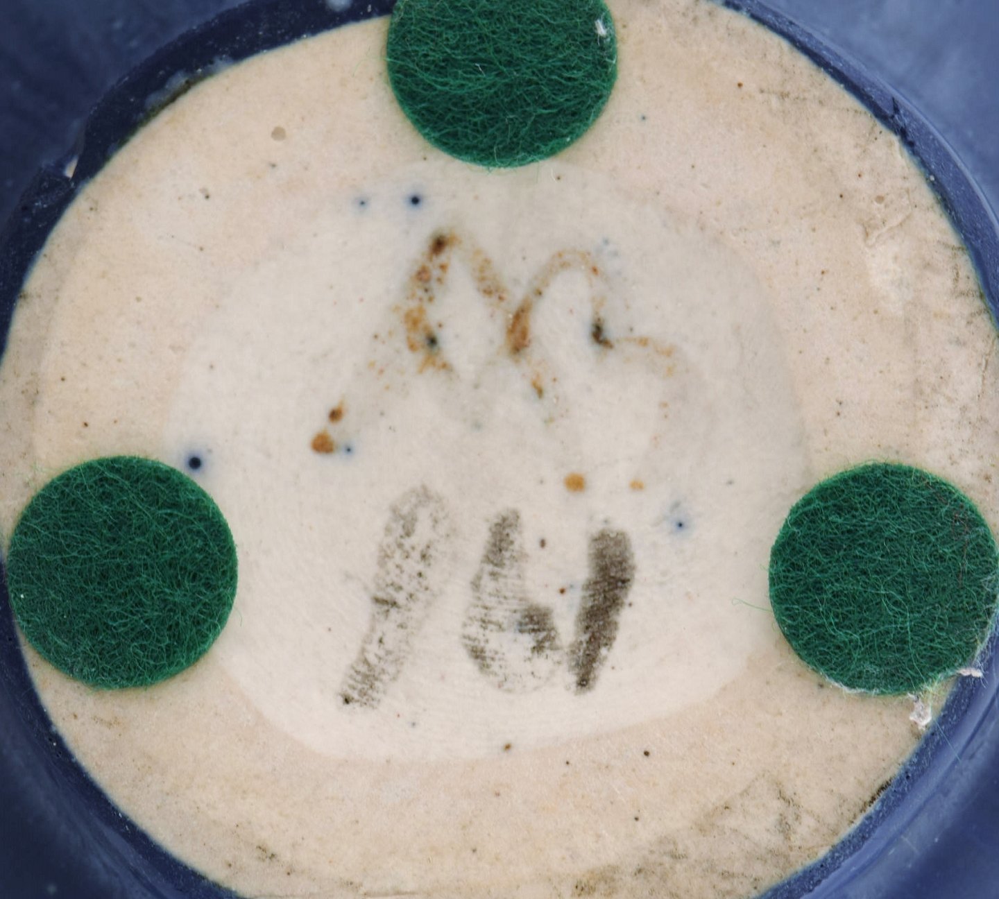 Arne Bang. Kande med hank i glaseret keramik. Modelnummer 161. Smuk glasur i blå nuancer. 1940/50'erne.