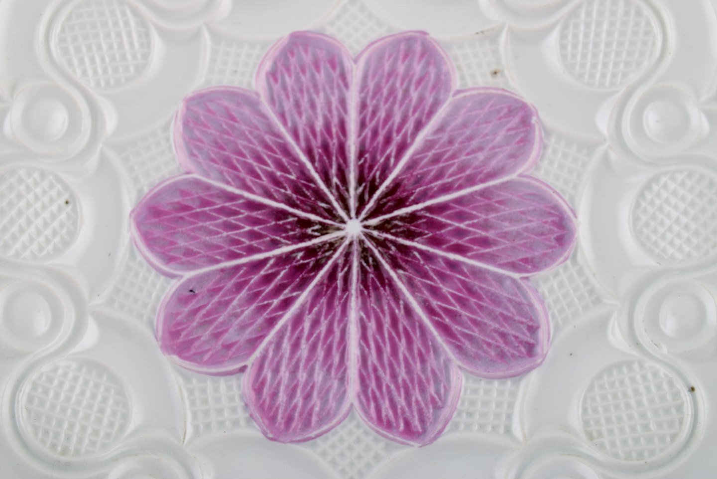 Antik Meissen tallerken med blomstermotiv og lilla dekoration. 1800-tallet.
