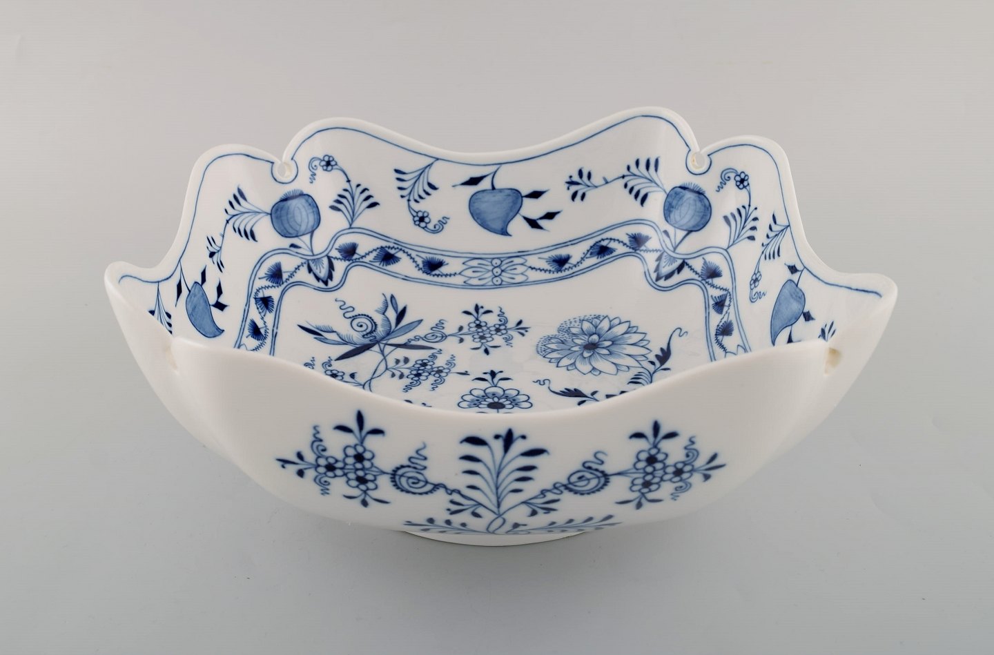 Antik Meissen "Løgmønstret" kvadratisk skål i håndmalet porcelæn. Tidligt 1900-tallet.