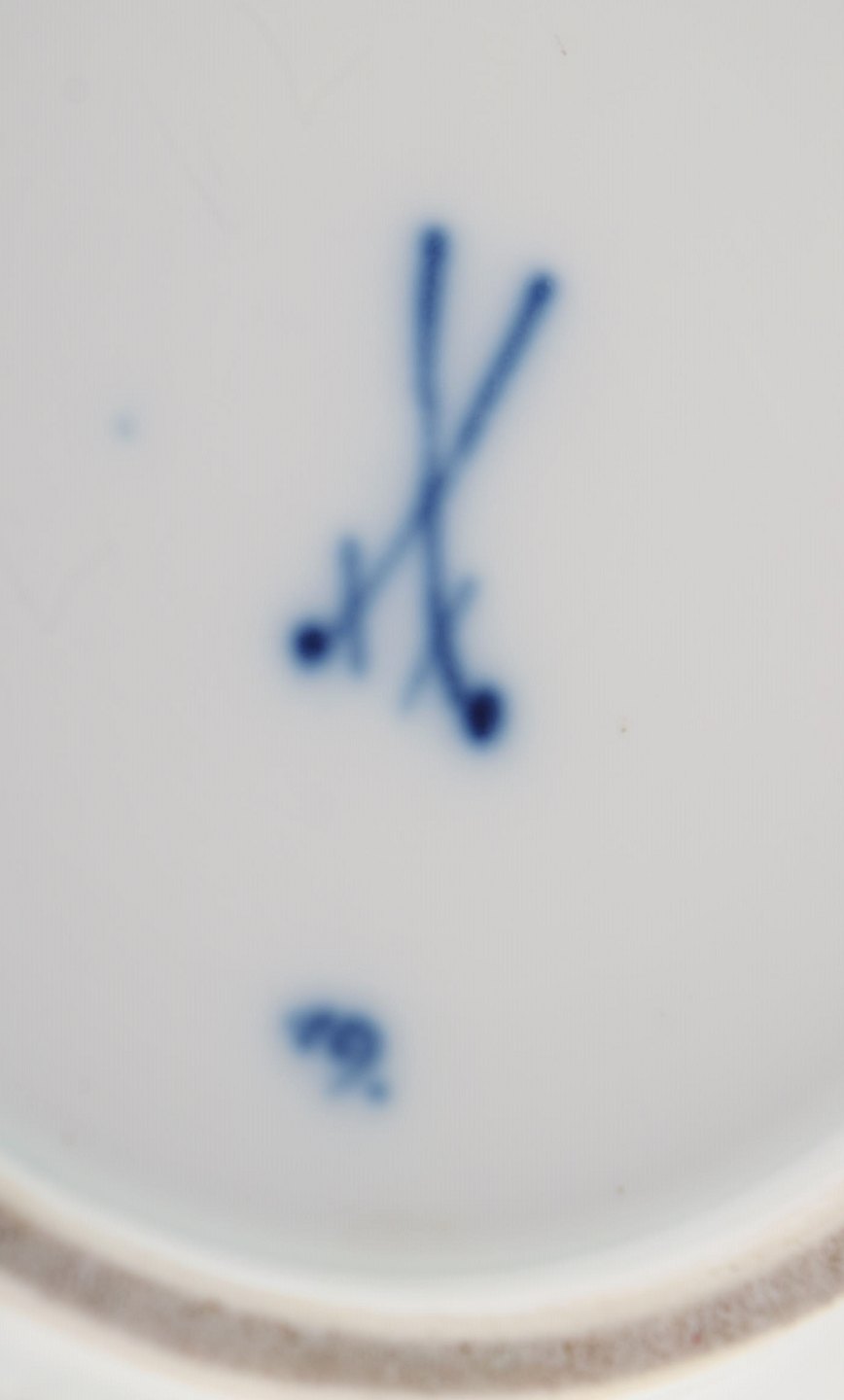 Antik Meissen "Løgmønstret" kaffekande i håndmalet porcelæn. Tidligt 1900-tallet. Måler: 23 x 18 cm. Stemplet. Indvendige skår i låget. 1. Sortering.