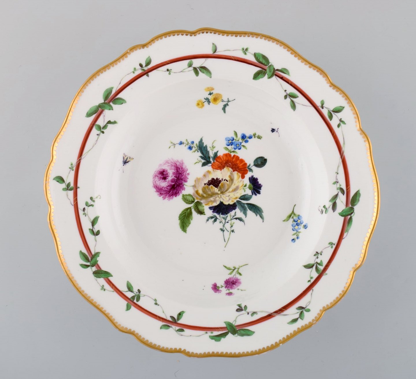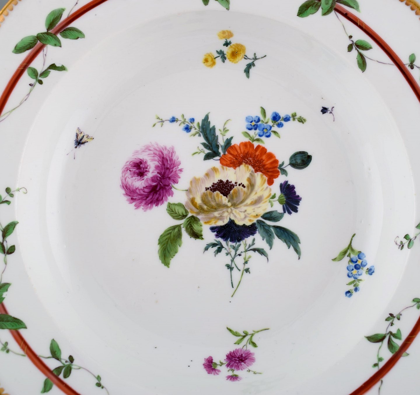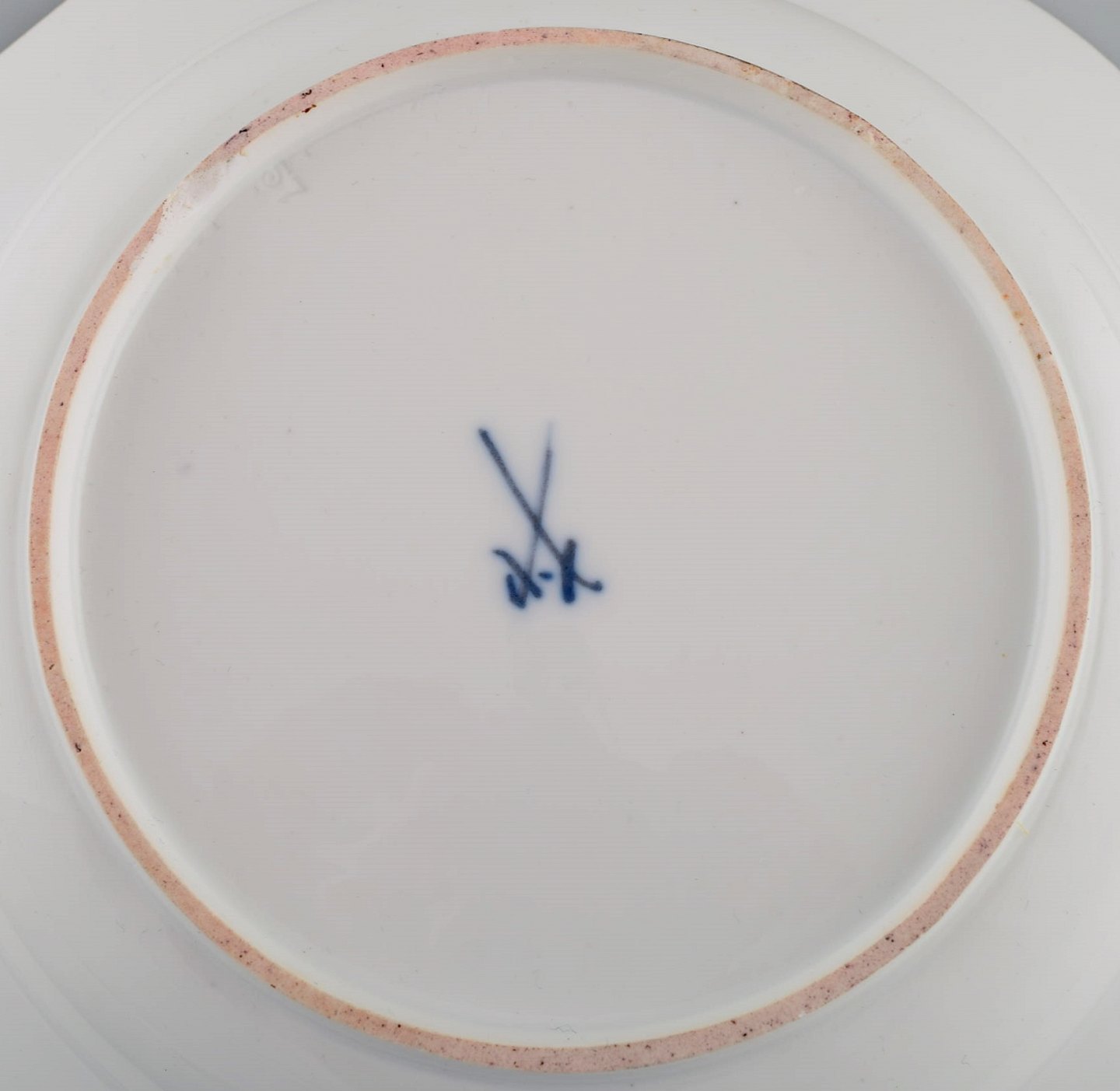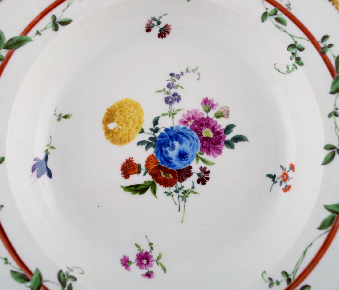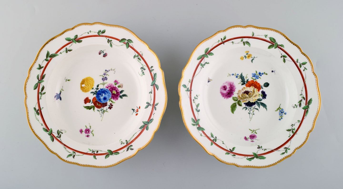 Two antique Meissen deep plates in pierced porcelain with hand-painted floral motifs. Museum Quality. Dated 1773-1814.