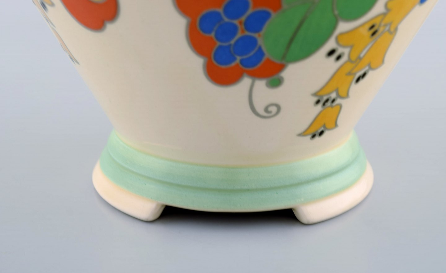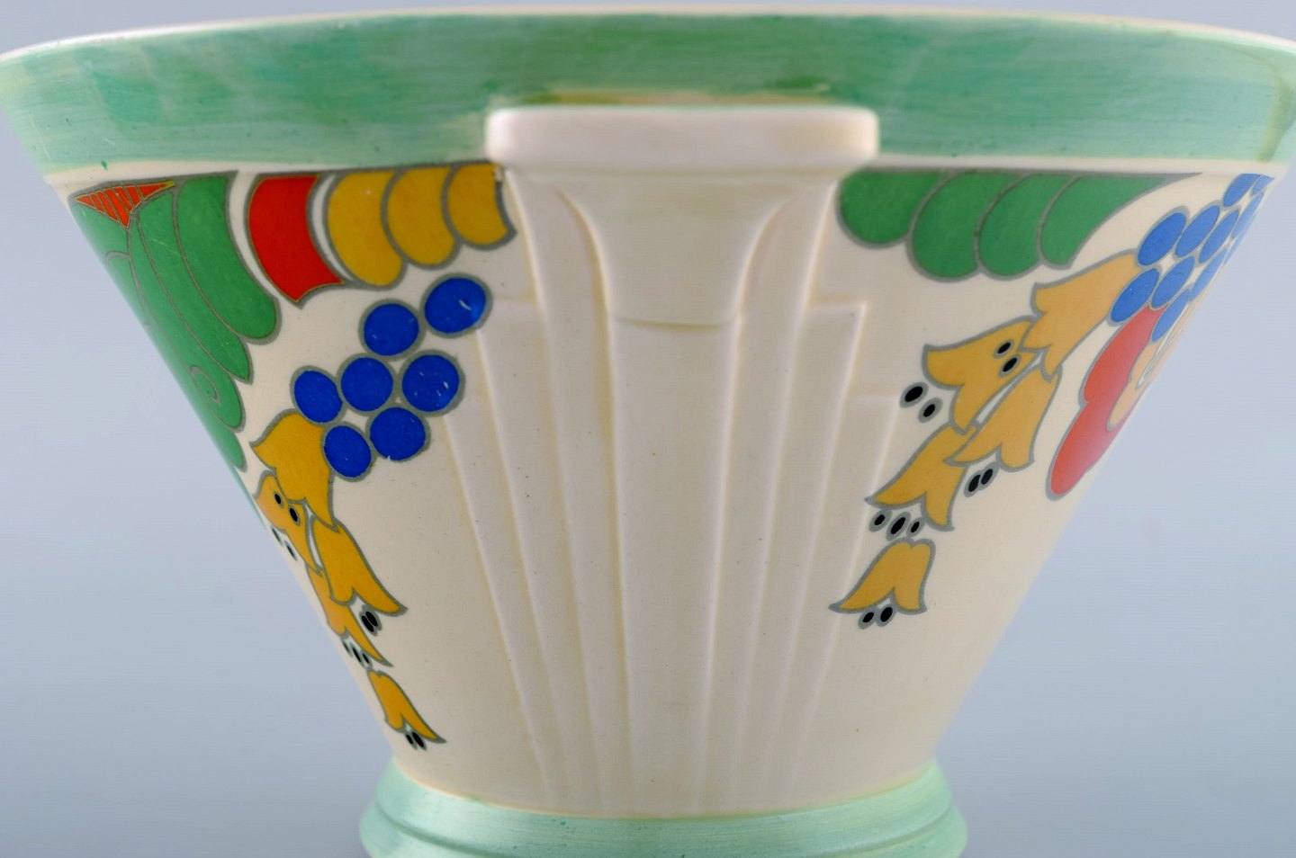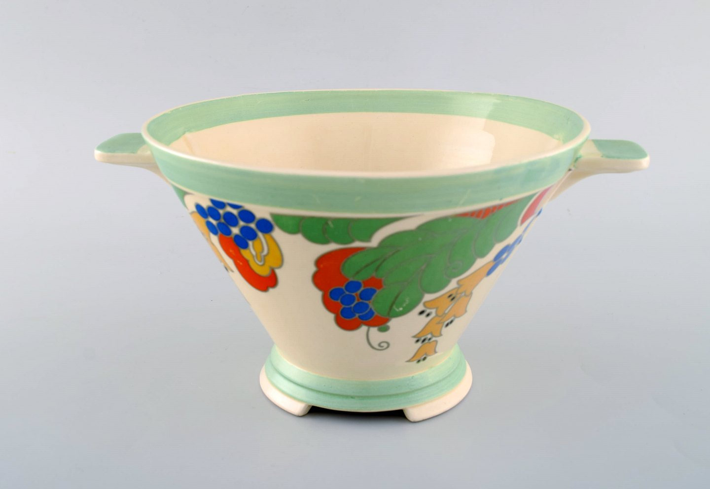 Clarice Cliff (1899-1963), England. Stor art deco Caprice skål i håndmalet porcelæn. Ca. 1940. Måler: 26 x 13,5 cm. I flot stand. Stemplet.