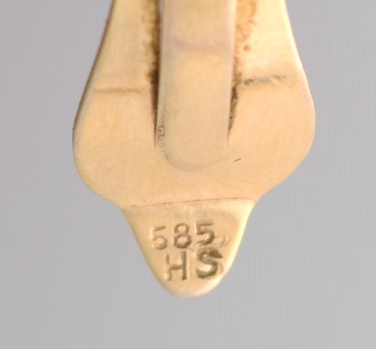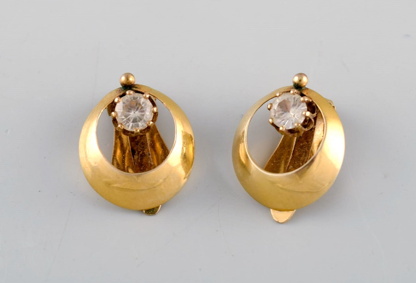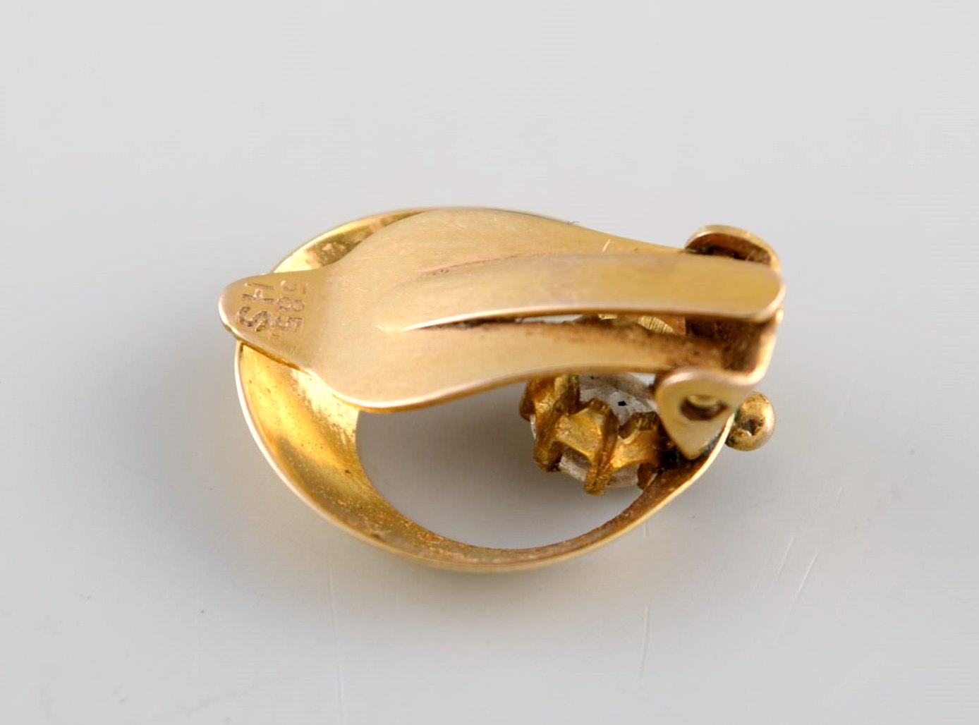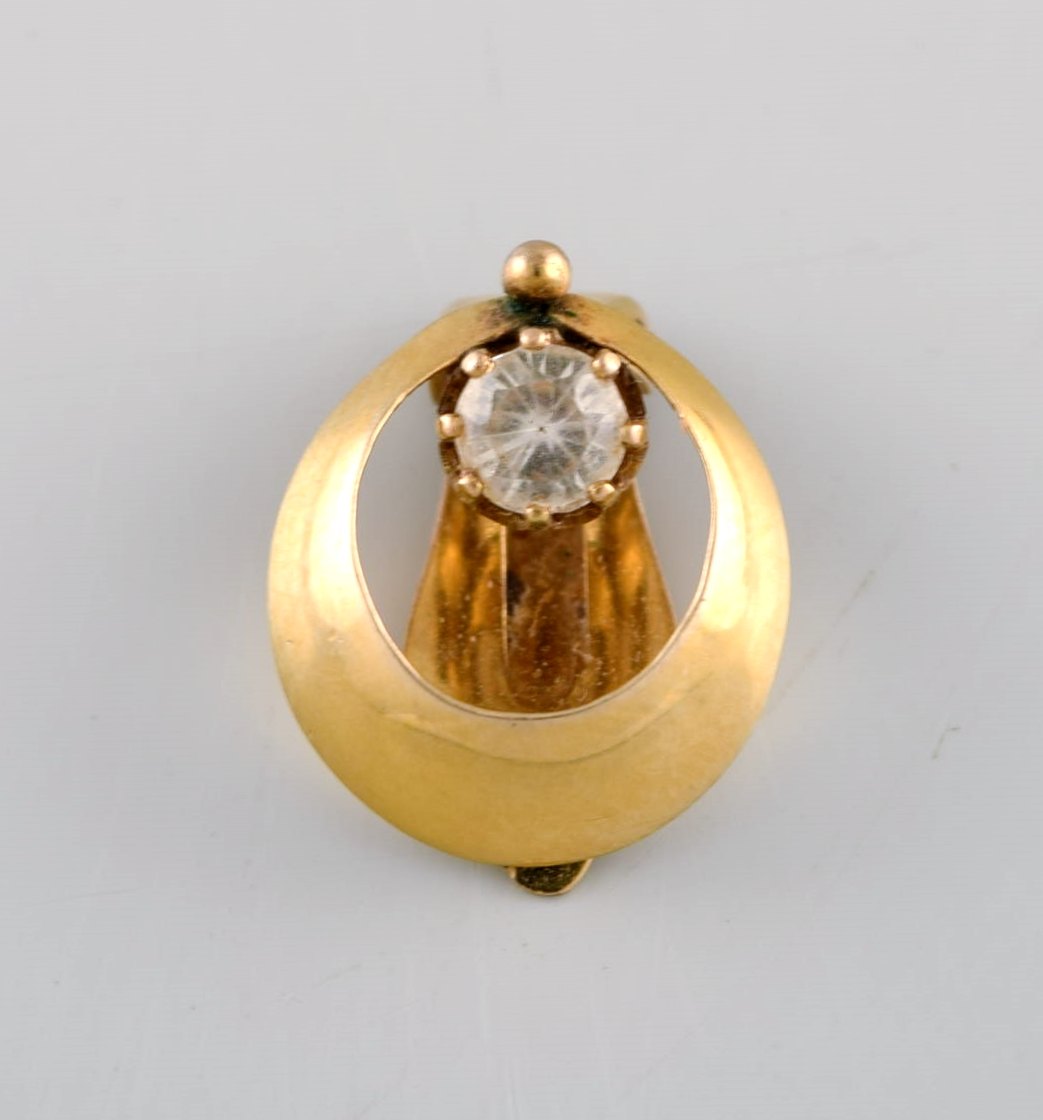 Skandinavisk guldsmed. Et par øreclips i 14 karat guld med halvædelsten. Midt 1900-tallet.