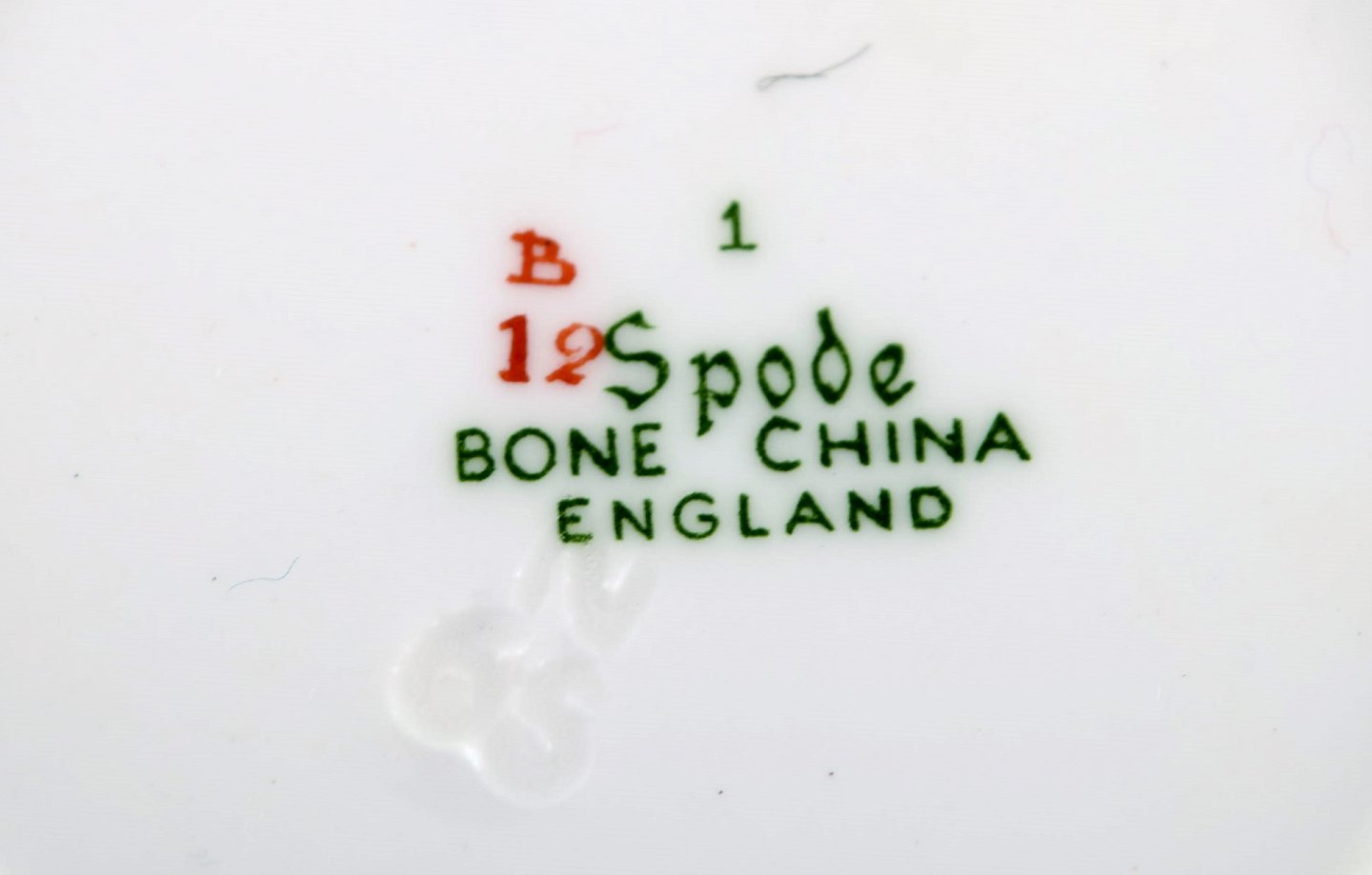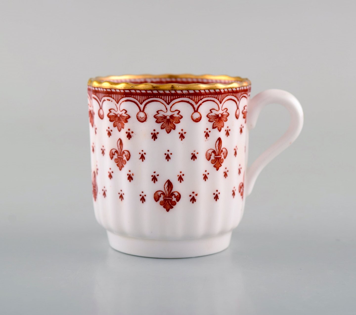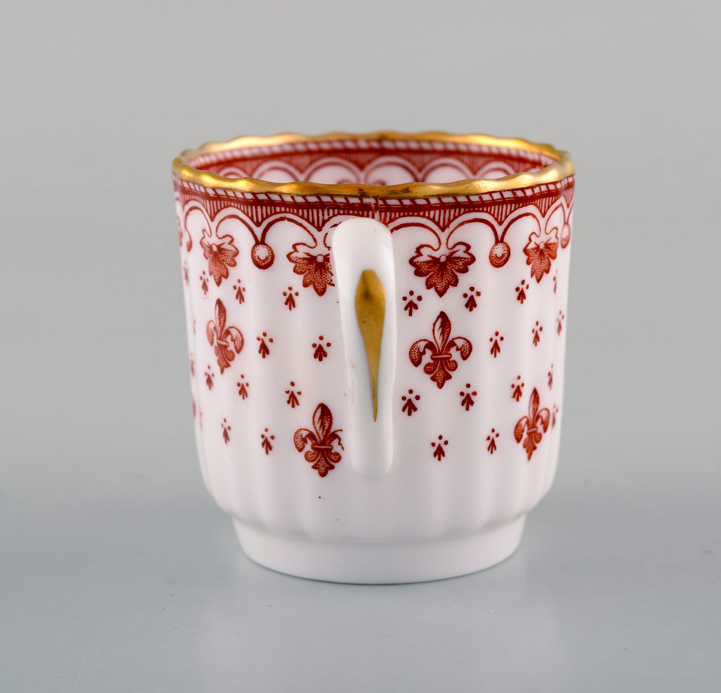 Spode, England. 10 kaffekopper med underkopper i håndmalet porcelæn med gulddekoration. 1920/30'erne.