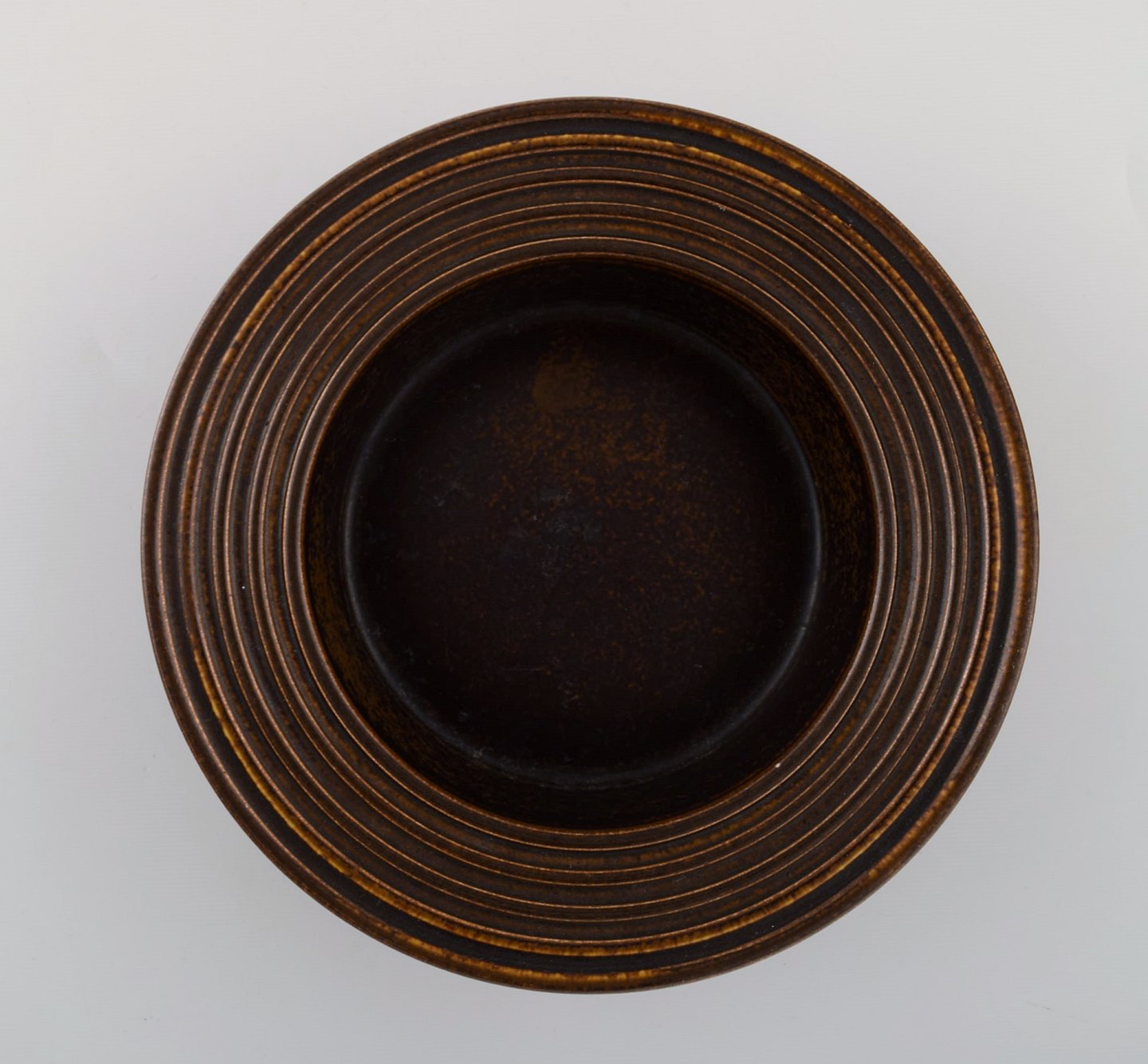 Arabia, Finland. Lav skål i glaseret keramik med rillet kant. Smuk glasur i brune nuancer. 1960'erne. Måler: 17 x 4,5 cm. I flot stand. Signeret.