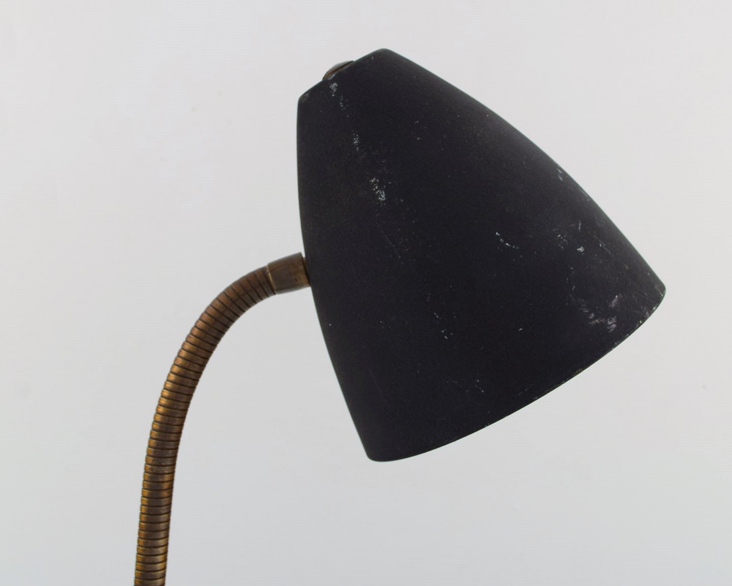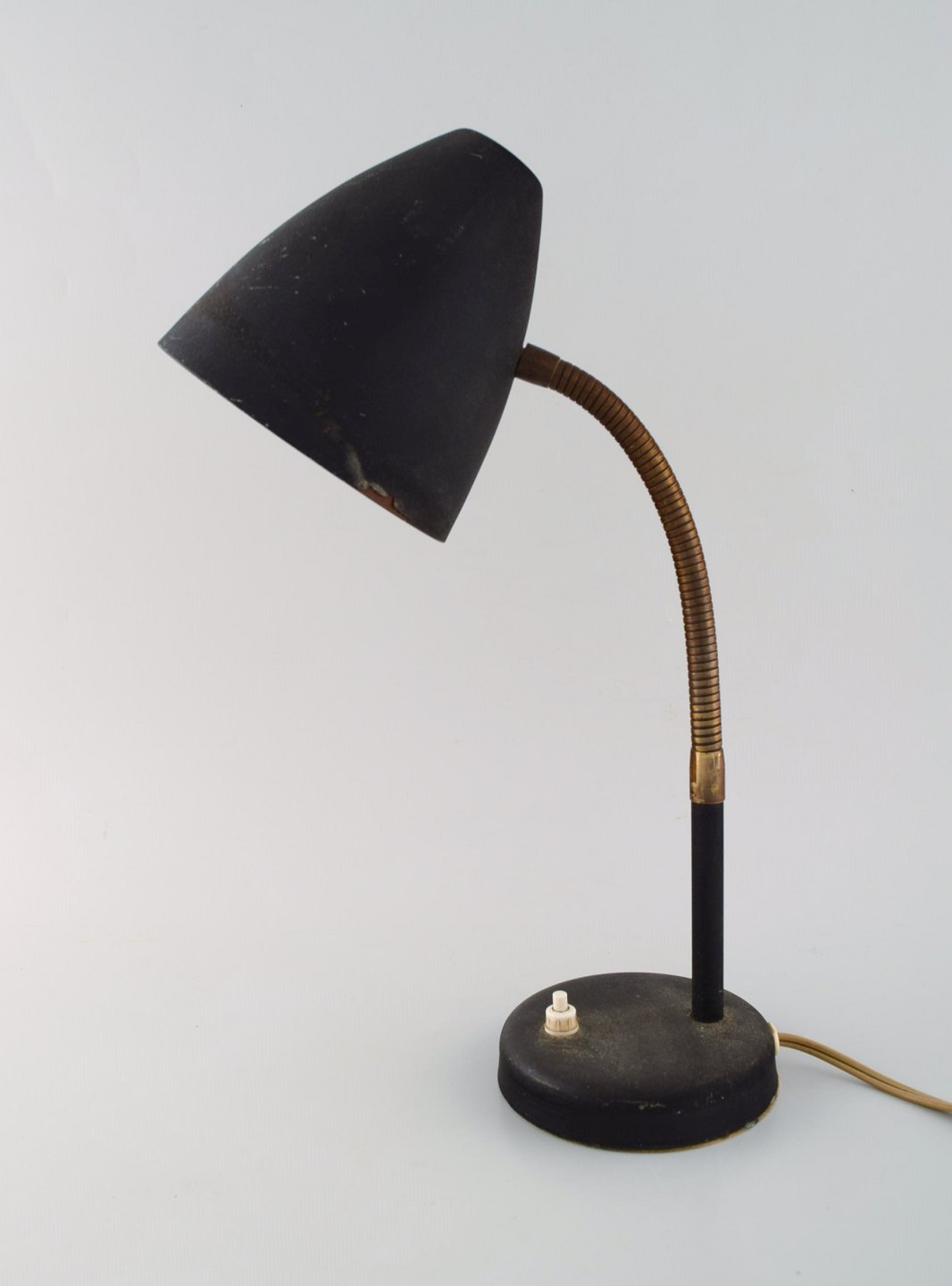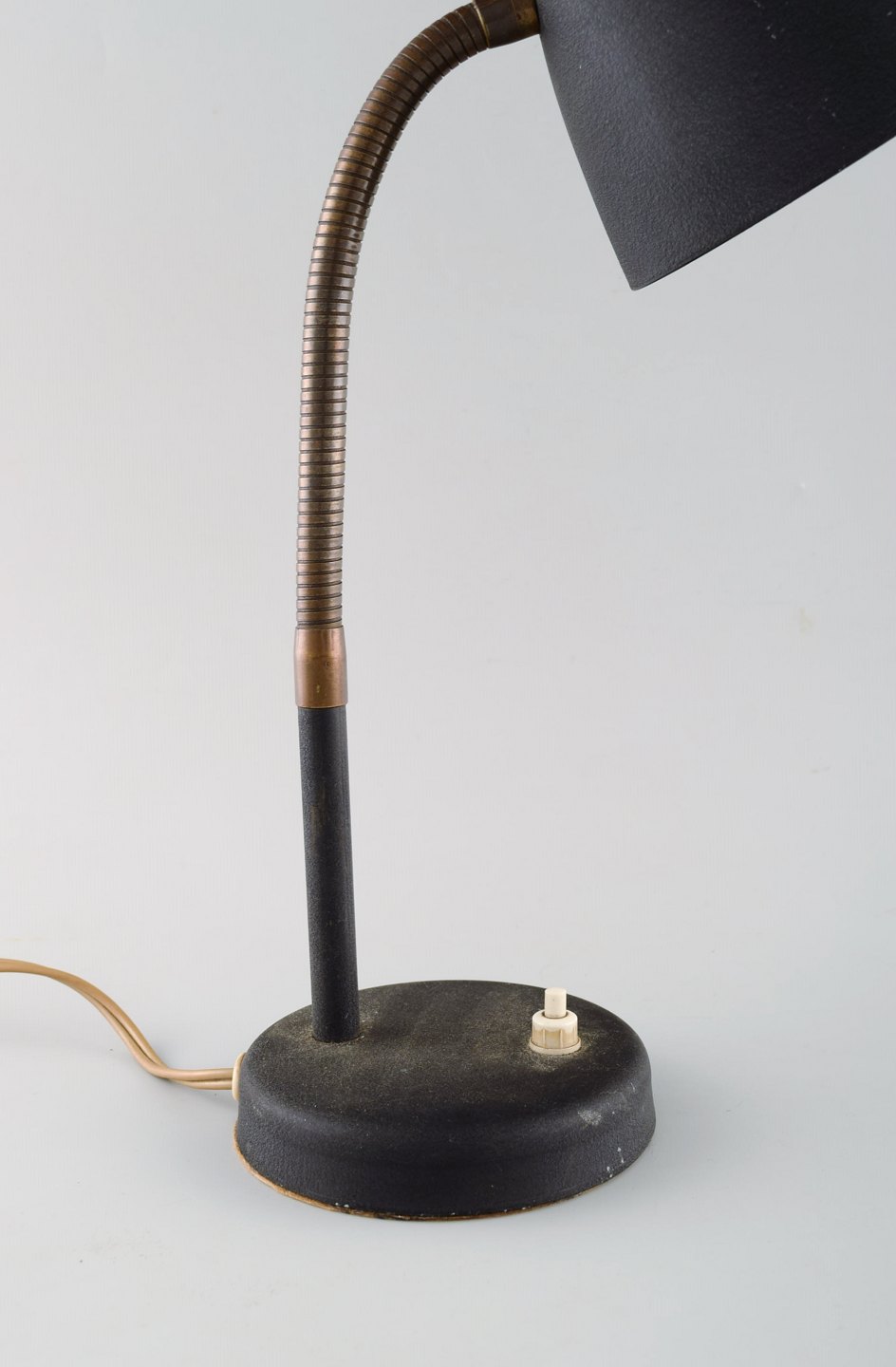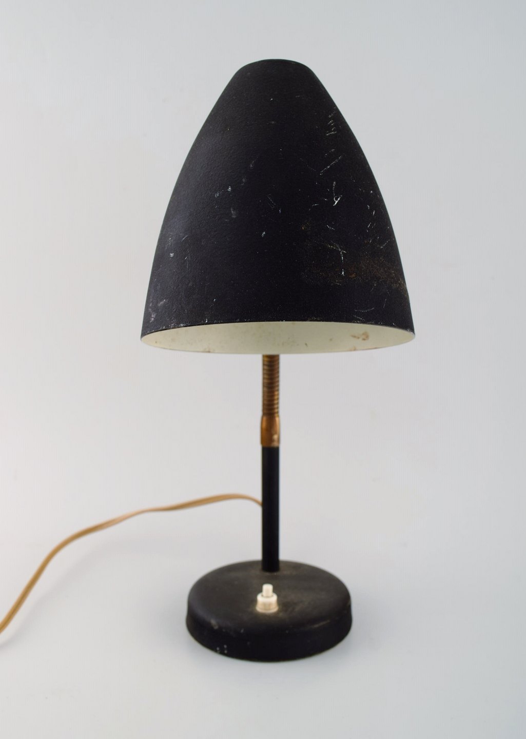 Justerbar retro bordlampe i original sort med afbryder på foden. 1960'erne.