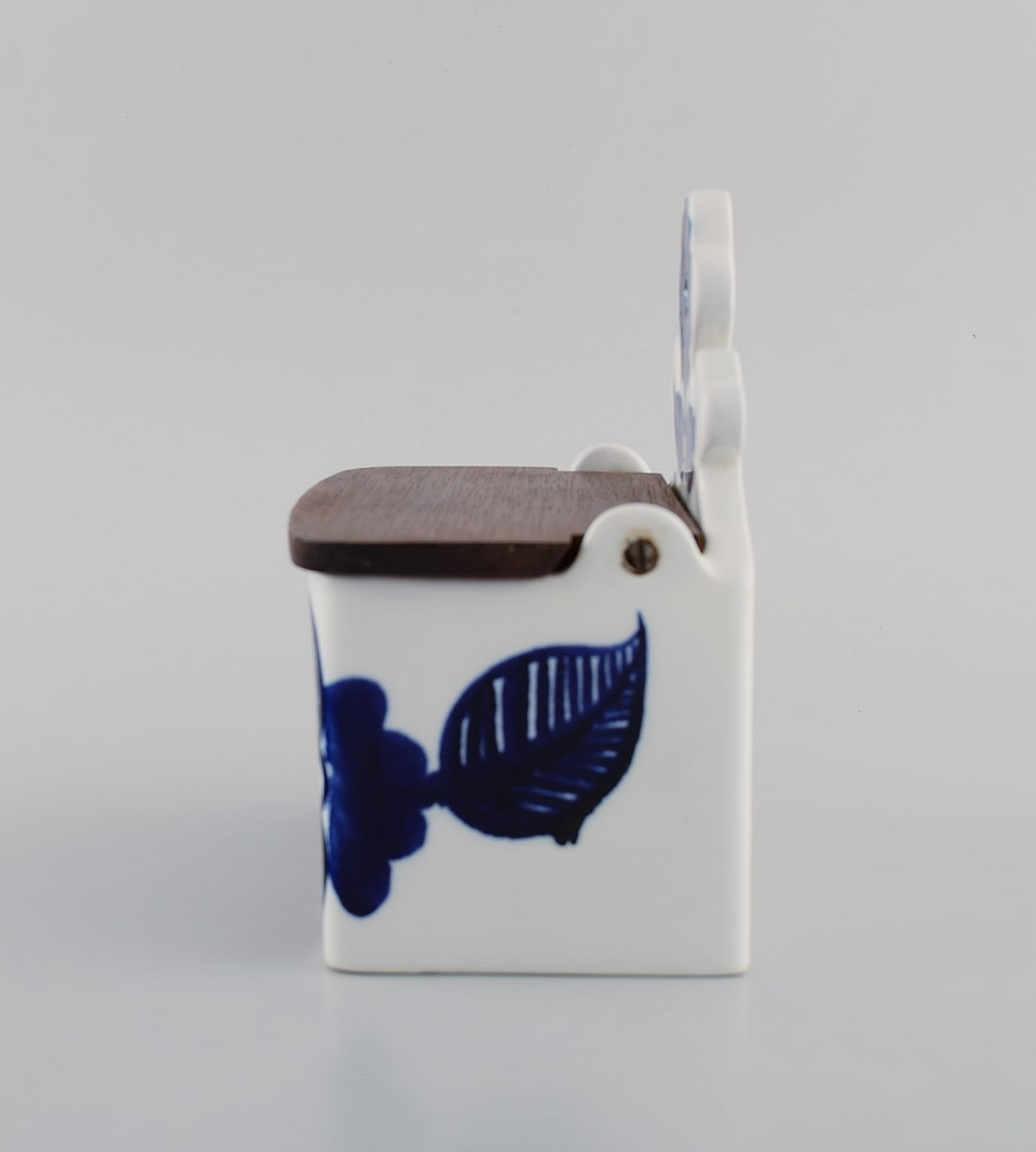 Gunvor Olin Gronqvist for Arabia. Saltkar i porcelæn dekoreret med blå blomster. 1960/70'erne. Måler: 15,5 x 13,5 cm. I flot stand. Signeret.