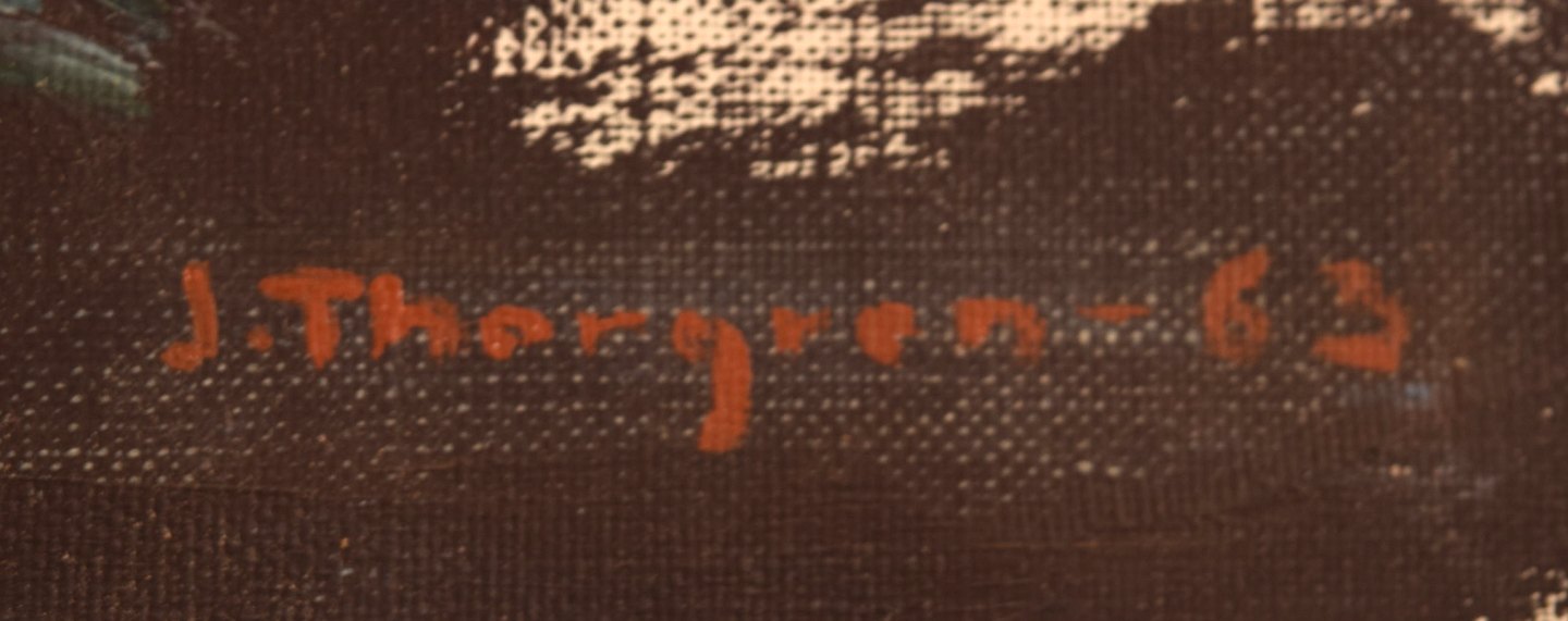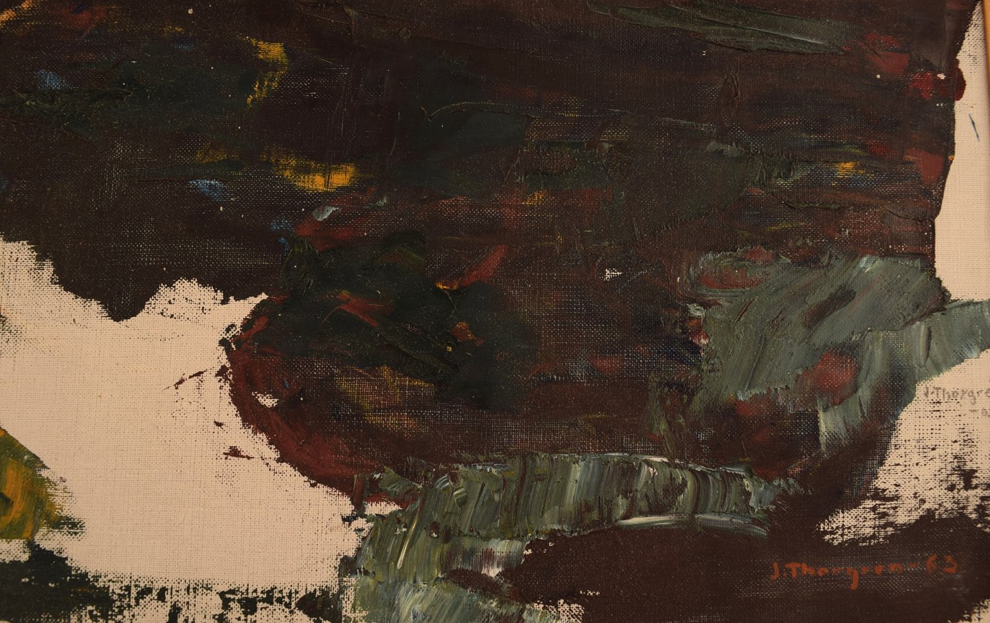 John Thorgren (1918-2000), Swedish artist. Oil on canvas. Modernist landscape. Dated 1963.