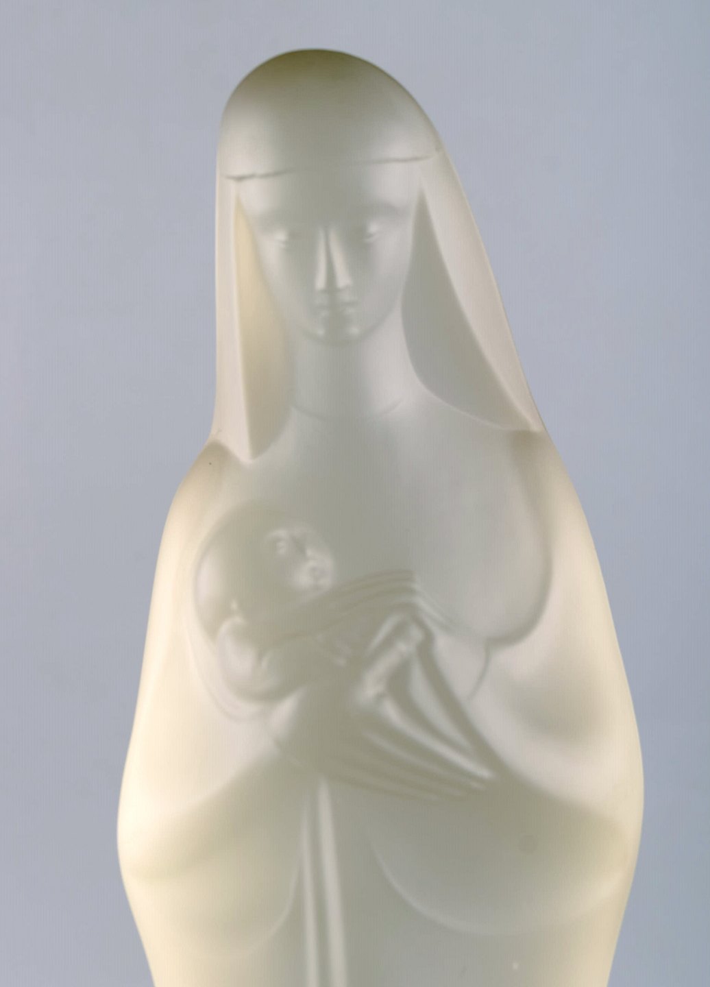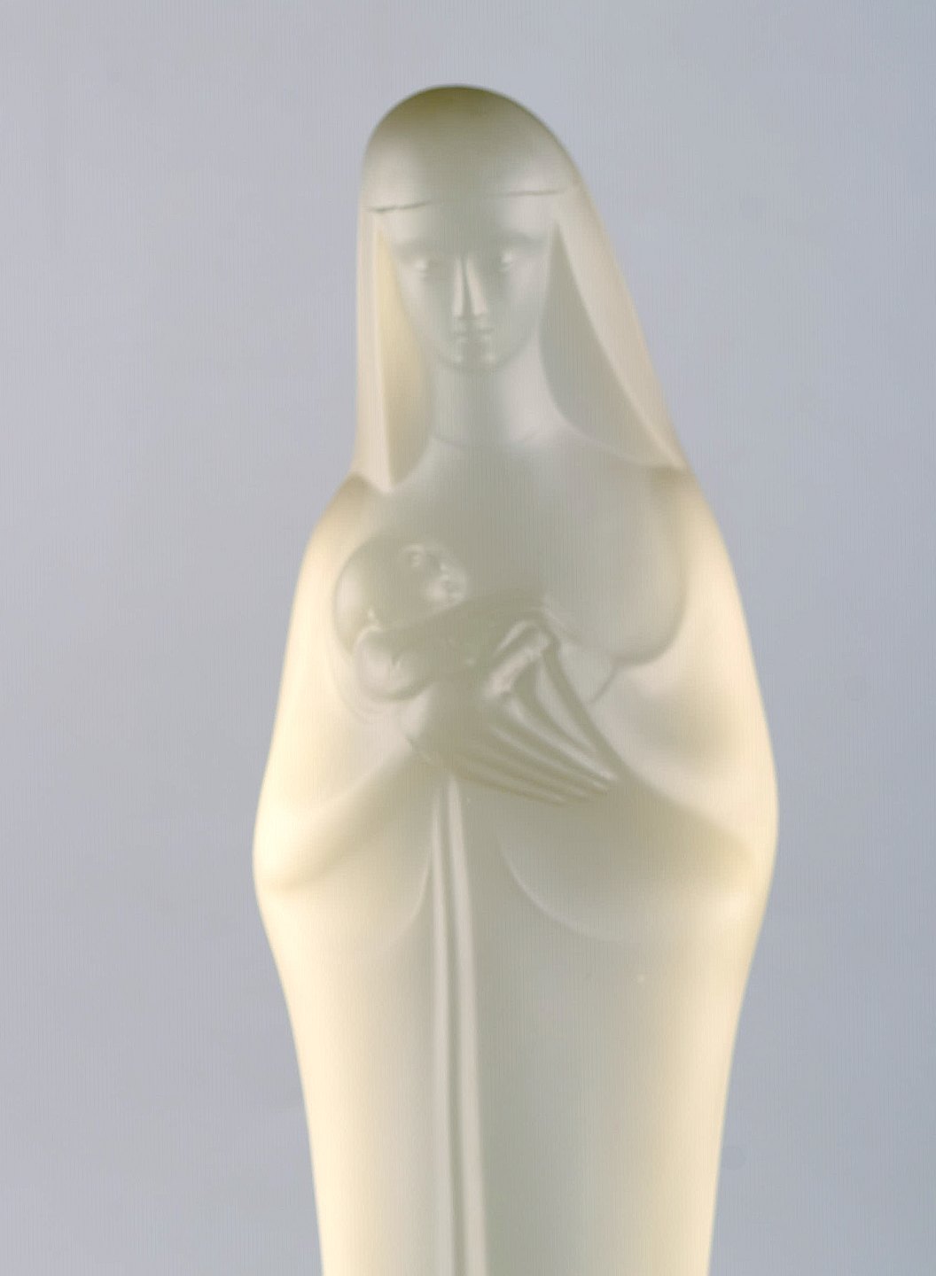 Leerdam, Holland. Stor skulptur af Madonna i kunstglas. 1900-tallet. Måler: 37 x 8,5 cm.