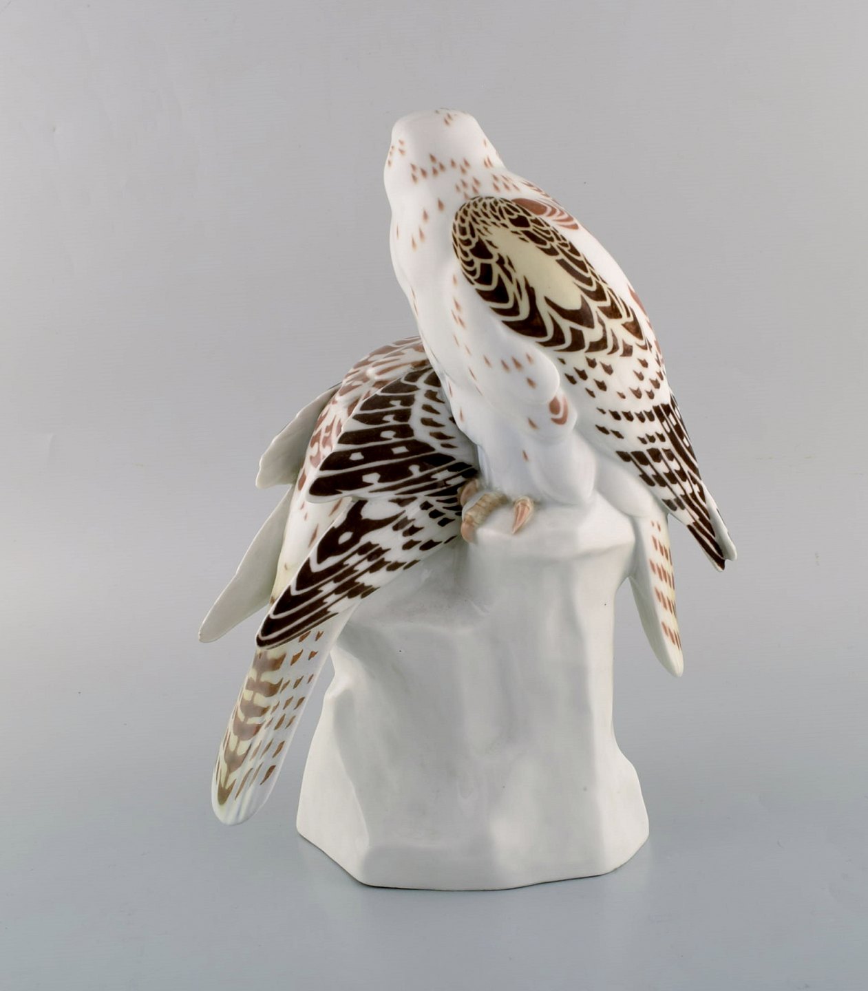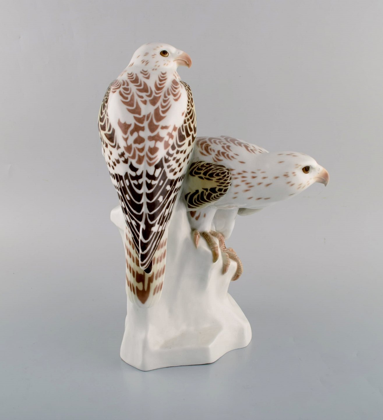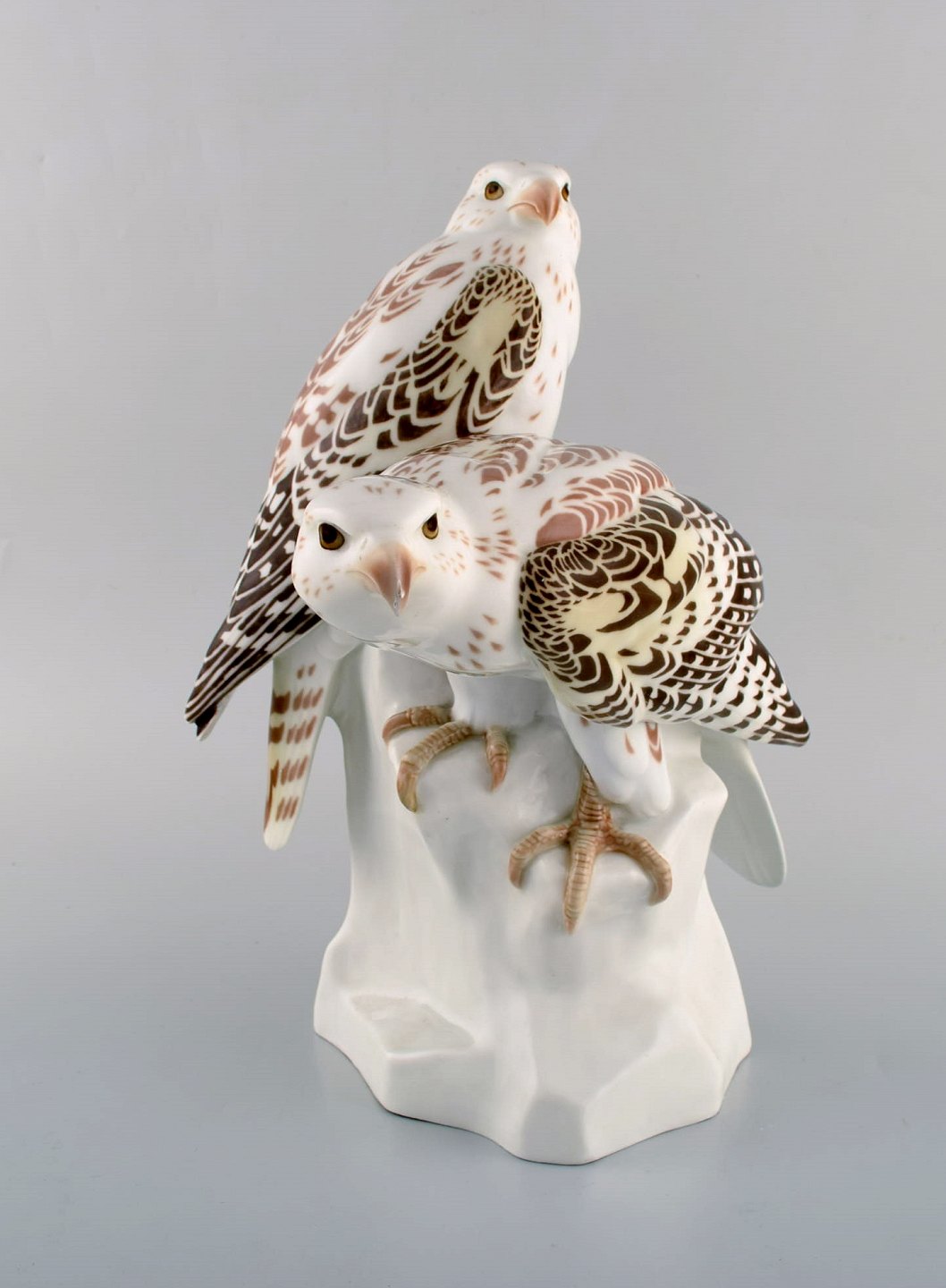 Meissen, Tyskland. Stor figur med to falke i håndmalet porcelæn efter design af Max Hermann Fritz, ca. 1908. Modelnummer: 185.