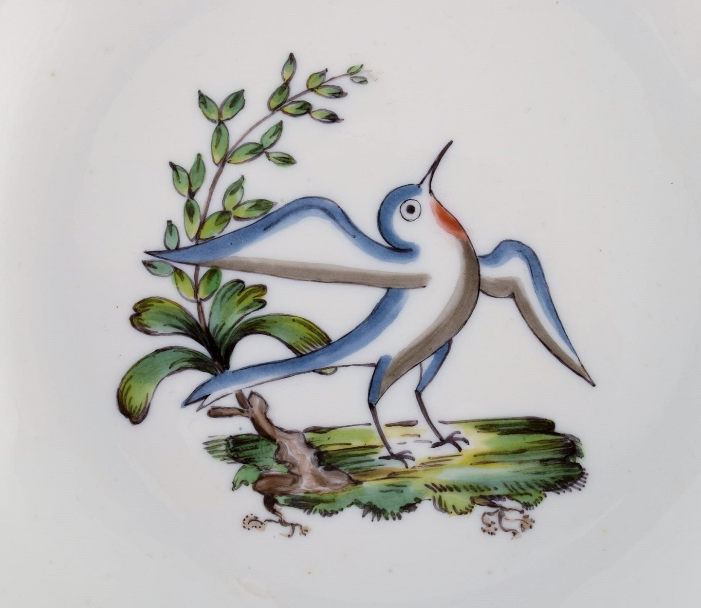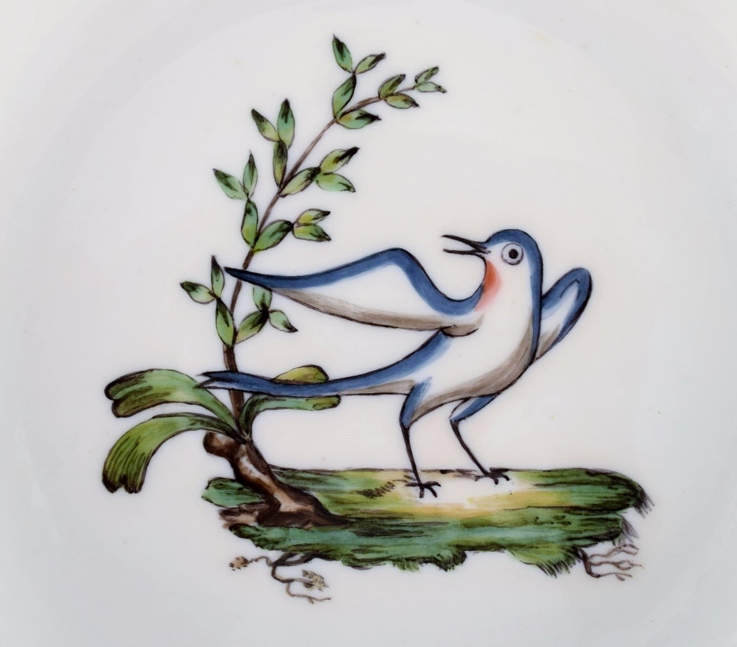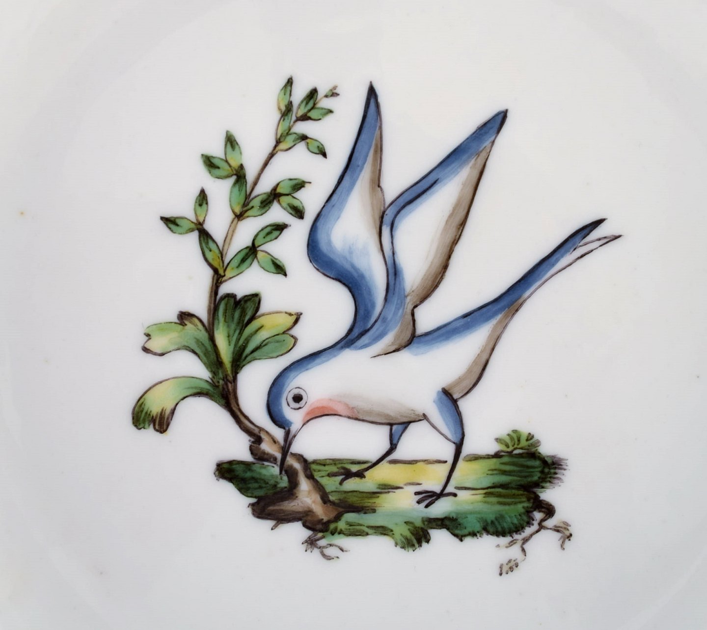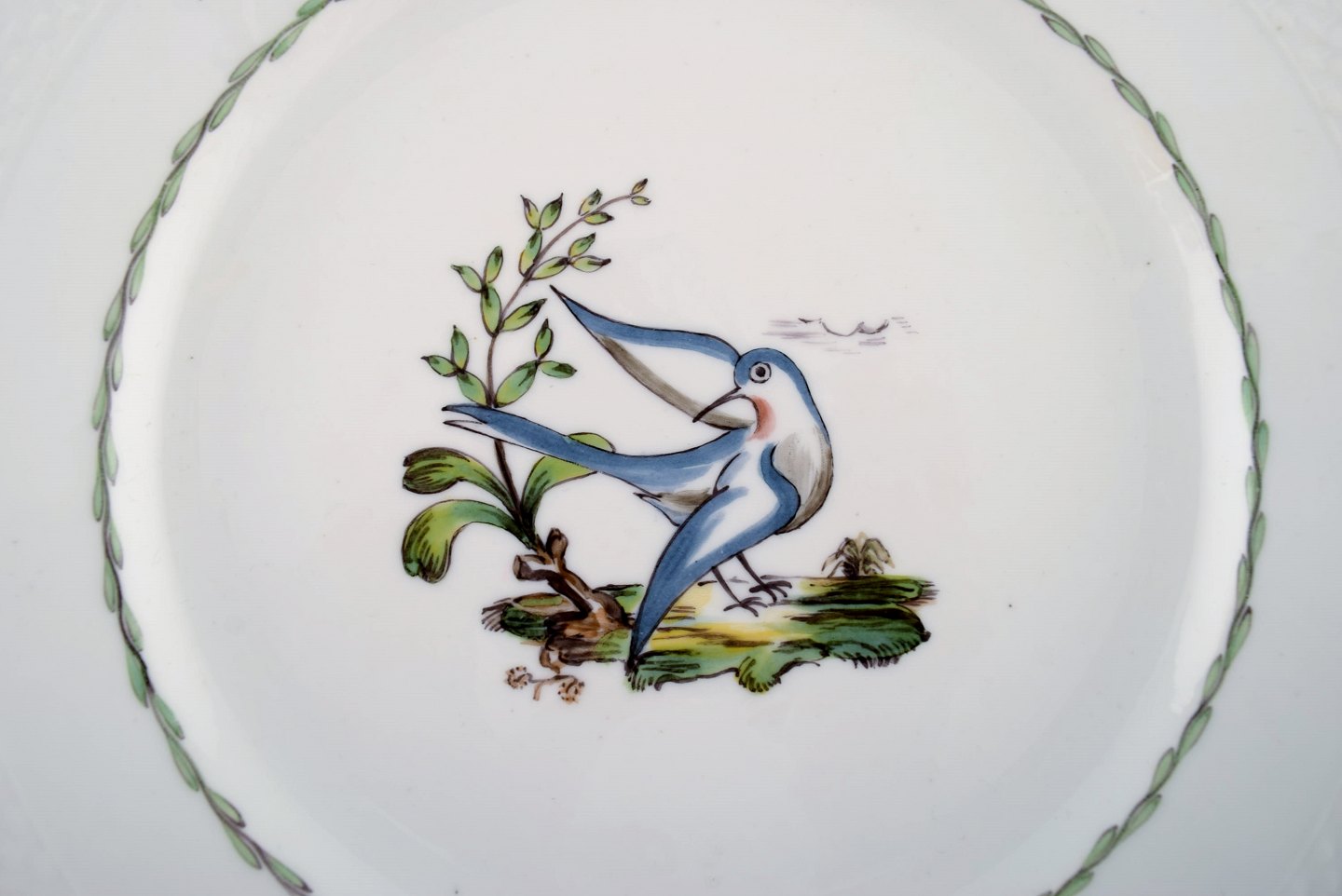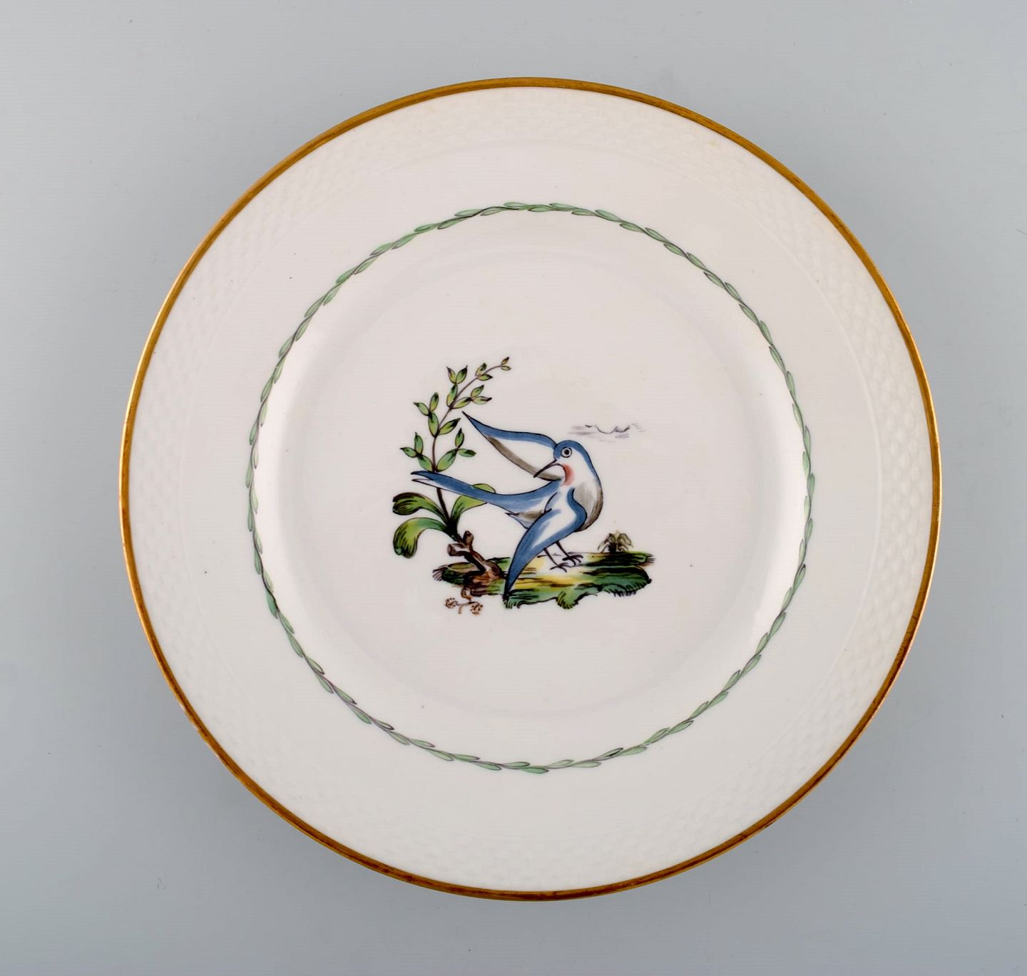 Royal Copenhagen middagstallerken i håndmalet porcelæn med fuglemotiver og gulddekoration. Tidligt 1900-tallet. 31 stk på lager. Diameter: 25 cm. I flot stand. Stemplet. 2. Sortering.