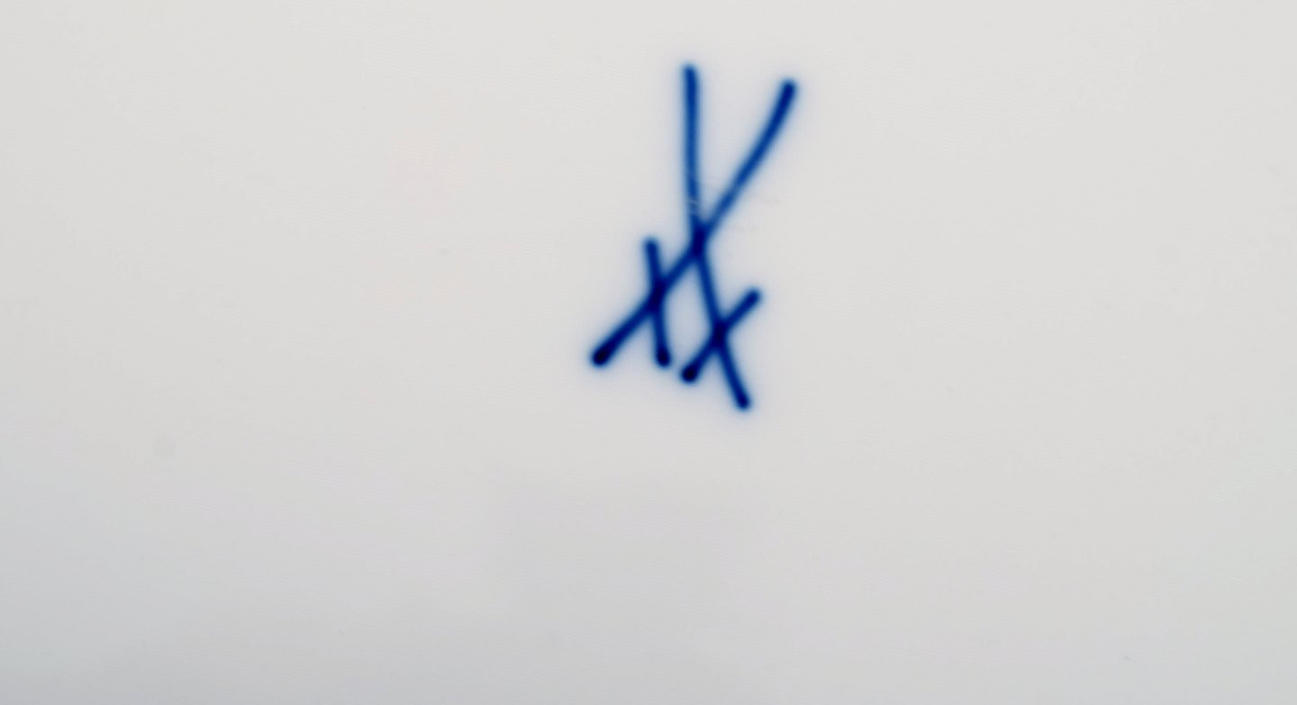 Stort rundt Meissen fad i håndmalet porcelæn med blomster. 1900-tallet. Diameter: 35,5 cm. I flot stand. Stemplet.