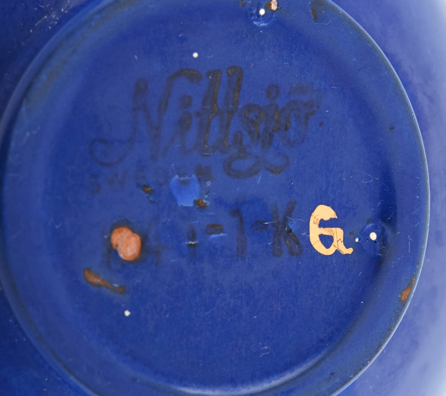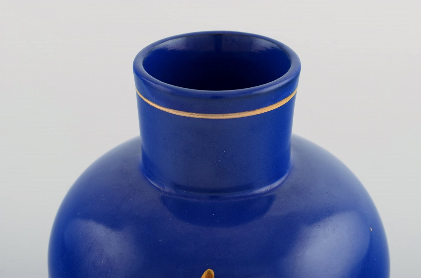 Nittsjö, Sweden. Vase in glazed ceramics. Blue glaze and leaves in gold. 1960's. Stamped. Measures: 12,5 x 12 cm. In very good condition.