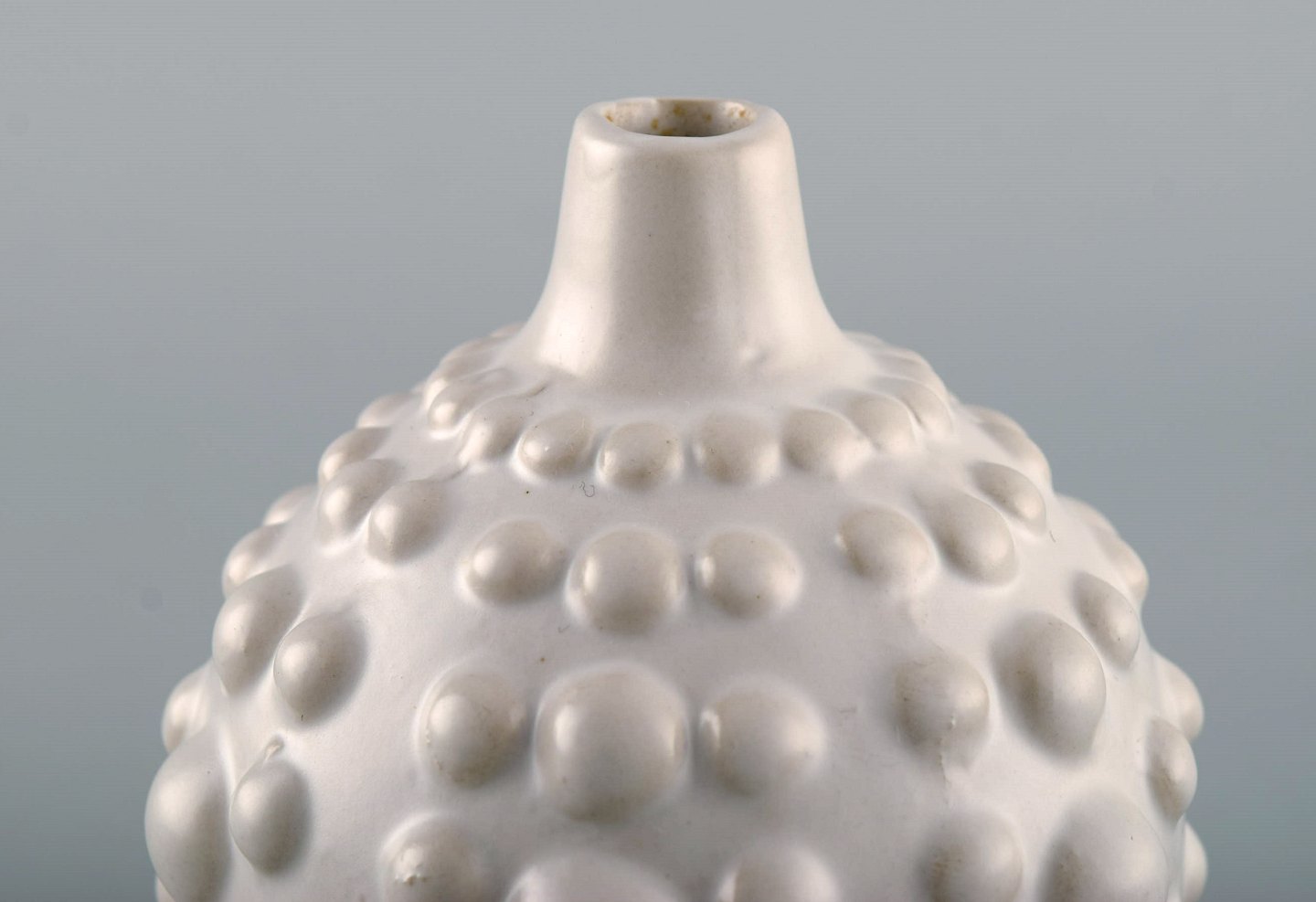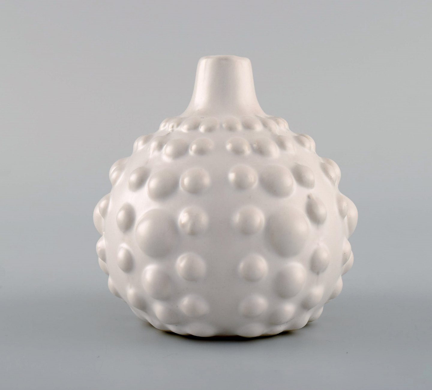 Europæisk studio keramiker. Unika vase i hvidglaseret keramik. 1980'erne. Måler: 9 x 9 cm. I flot stand.