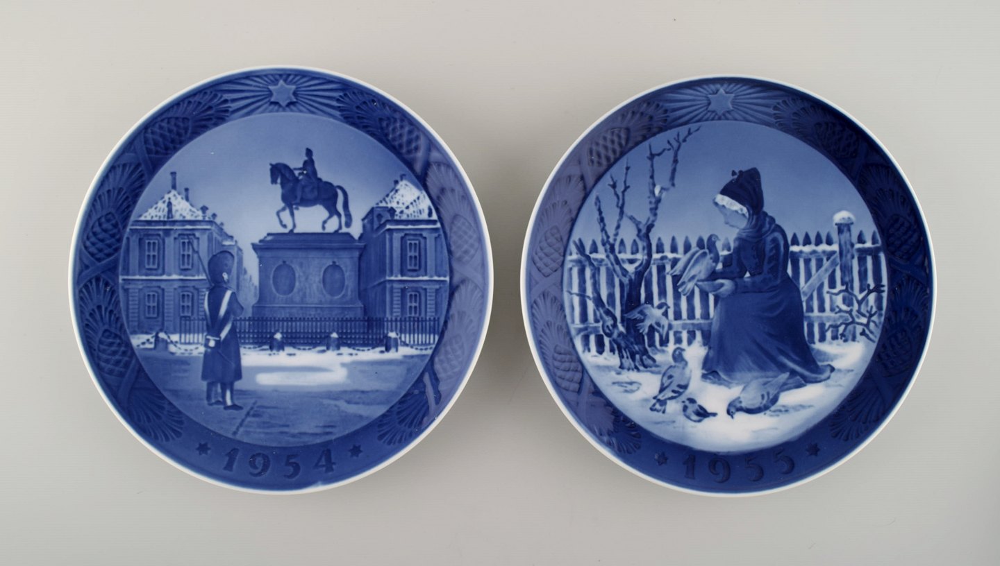 Seks Royal Copenhagen juleplatter fra 1954-59.
