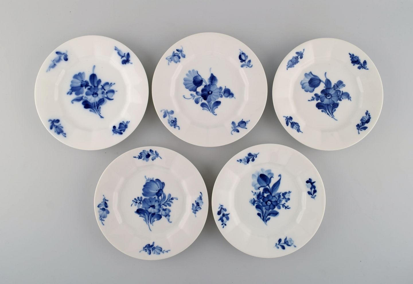 Royal Copenhagen. Blue flower angular. Five porcelain cake plates. Decoration number 10/8553. 1st factory quality. In perfect condition. Diameter: 15.5 cm.