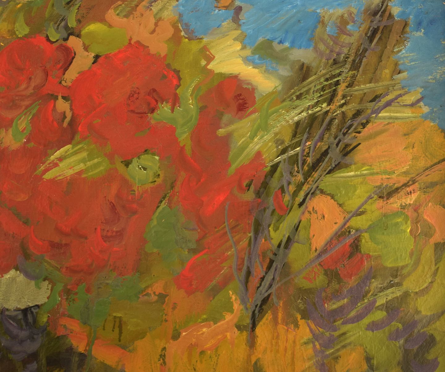 Sture Haglundh (1908-1978), Sverige. Mixed media på plade. Vilde blomster. 1960'erne. Pladen måler: 62 x 41 cm. Rammen måler: 4 cm. I flot stand. Signeret.