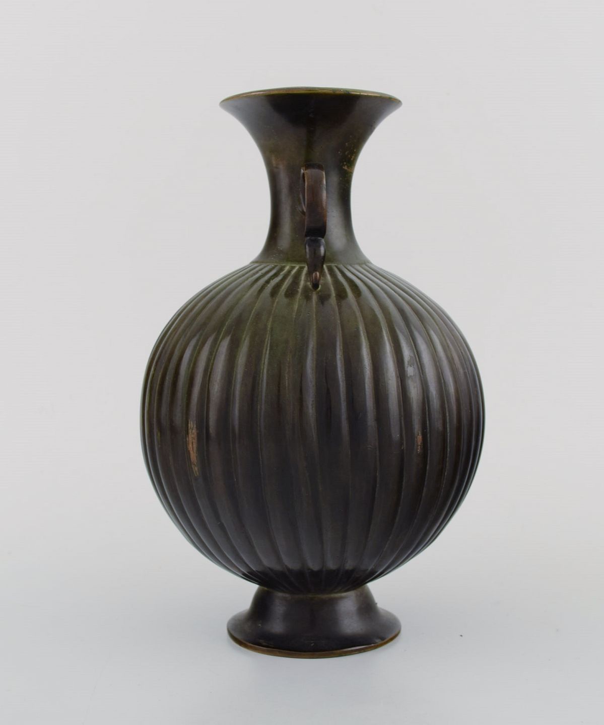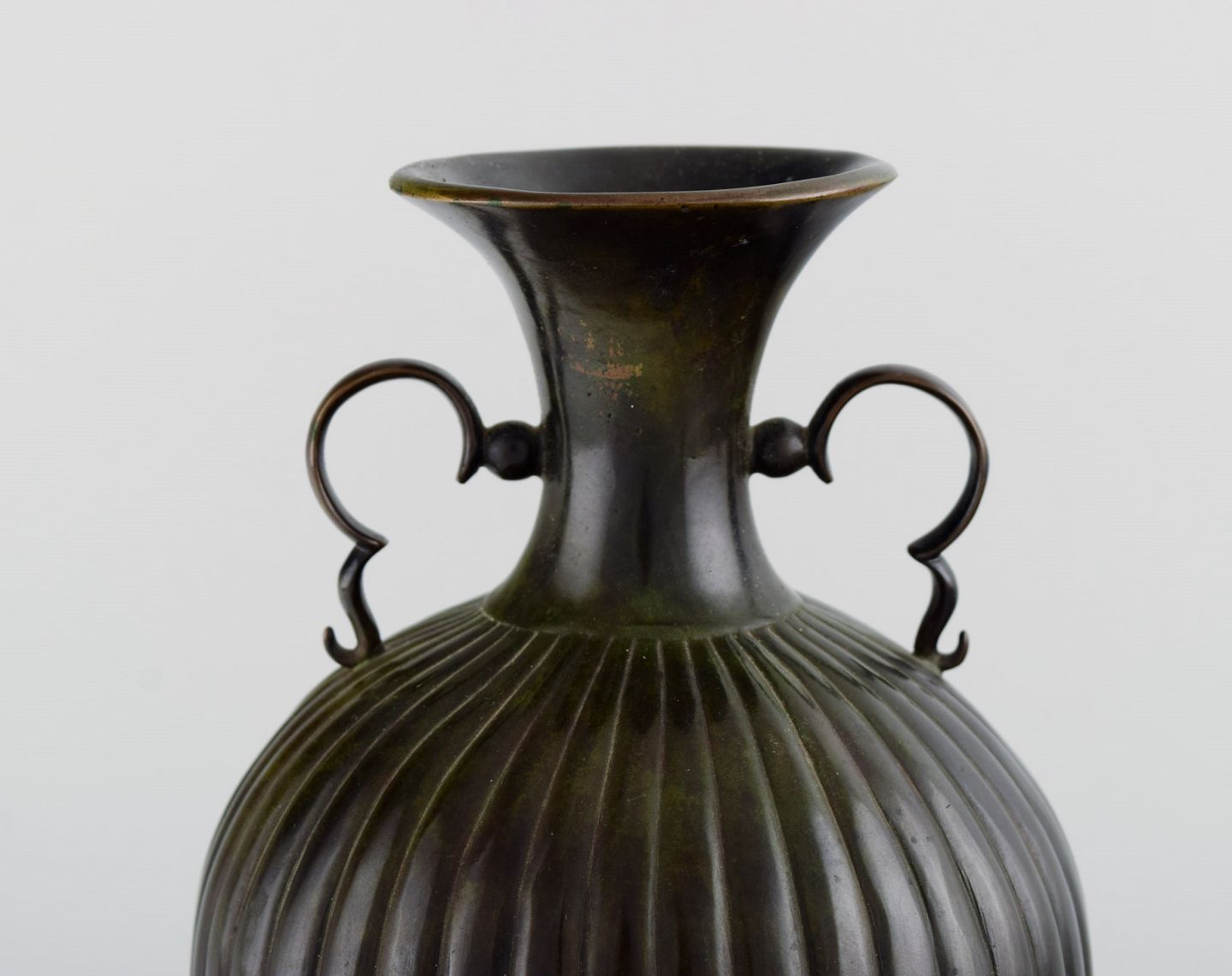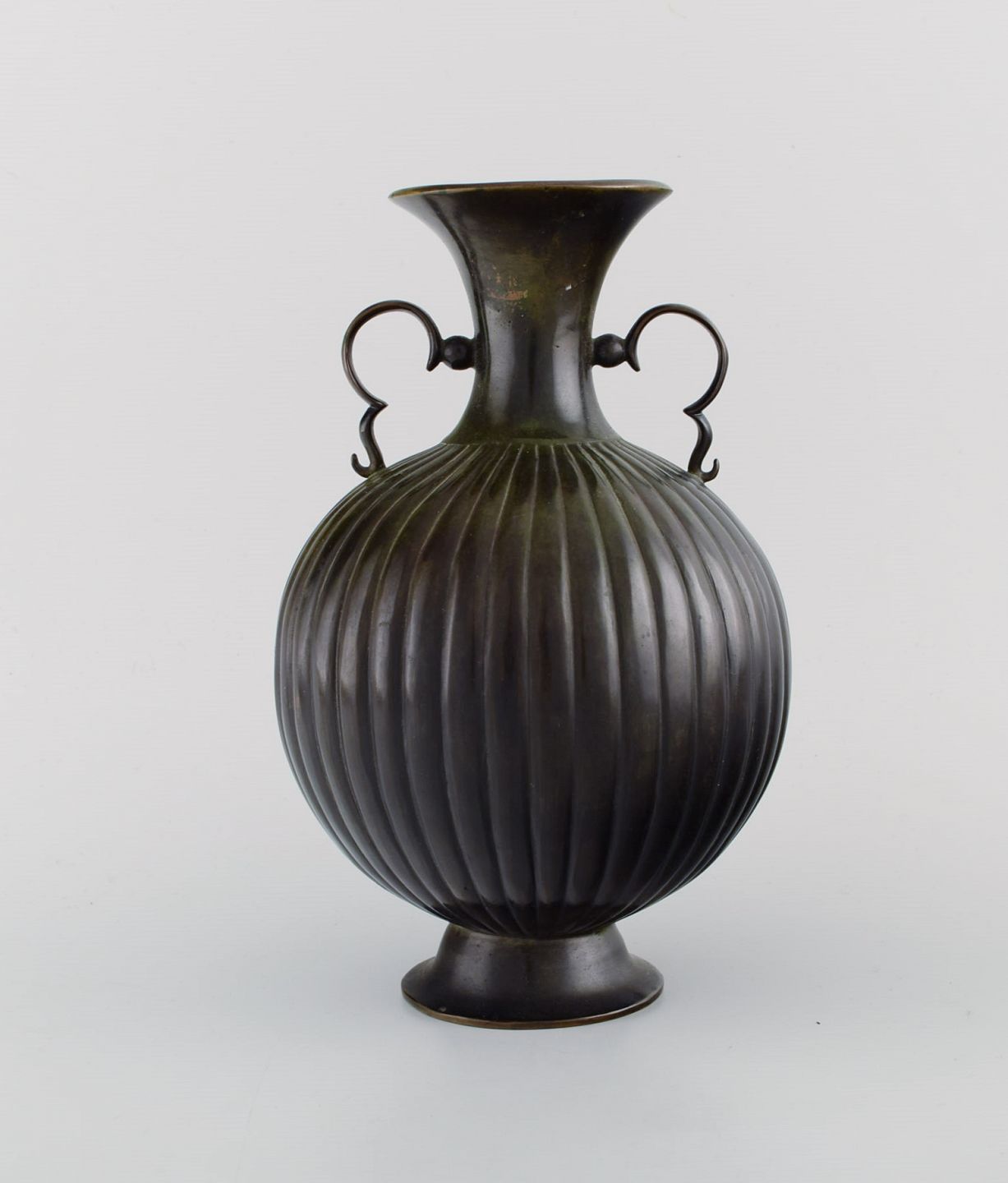Just Andersen, Danmark. Sjælden vase i bronze. Modelnummer B130. 1930'erne. Måler: 21,5 x 14 cm. I flot stand. Stemplet.