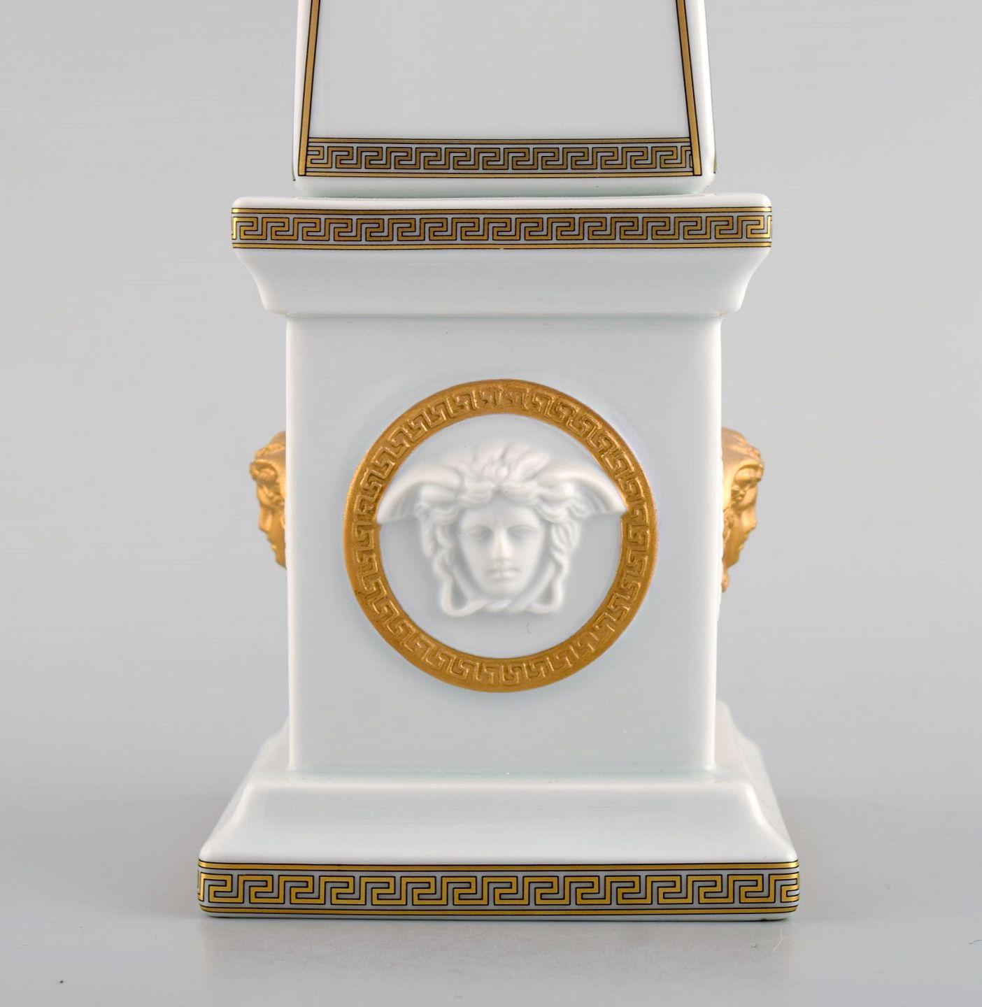 Gianni Versace for Rosenthal. Stor Gorgona obelisk i hvid porcelæn med gulddekoration og ornamentik. Sent 1900-tallet.
