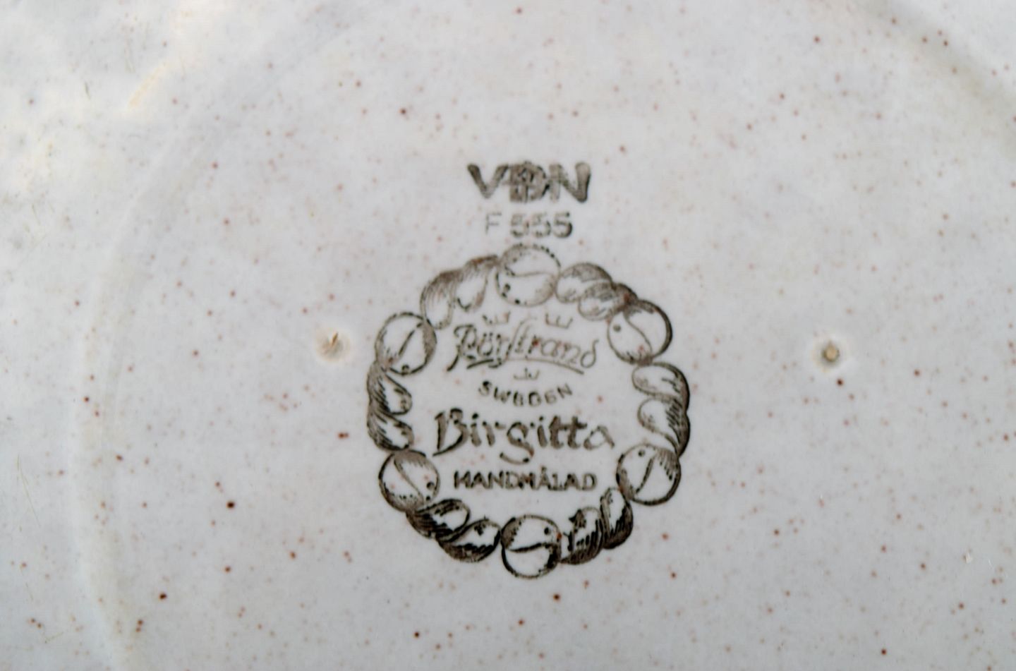 Jackie Lynd for Rörstrand. Five parts Birgitta tableware in hand-painted glazed stoneware. 1970s.