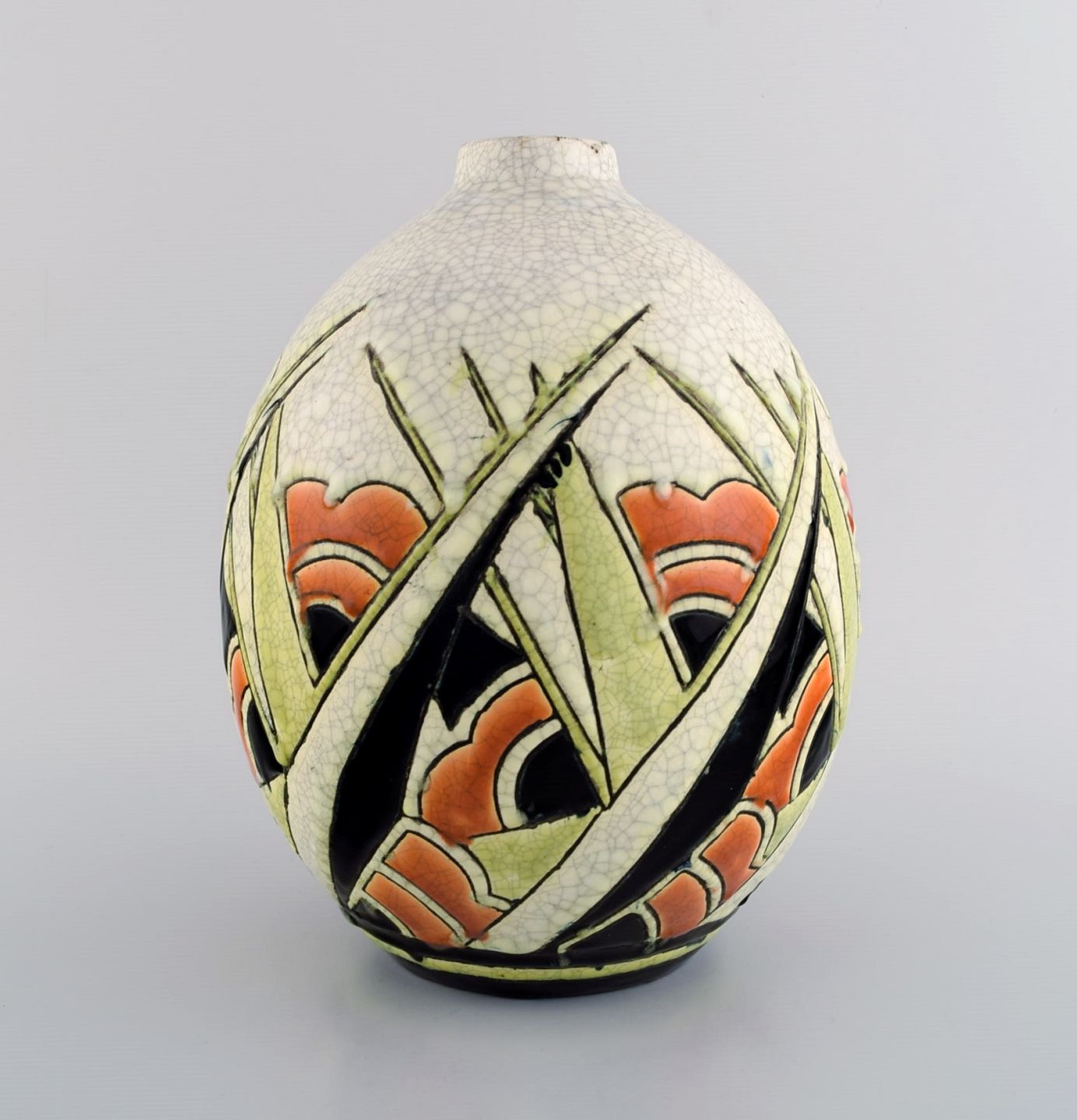 Charles Catteau (1880-1966) for Boch Freres Keramis, Belgien. Art deco keramikvase i cloisonné teknik. Håndmalet med blomster. 1920/30'erne.