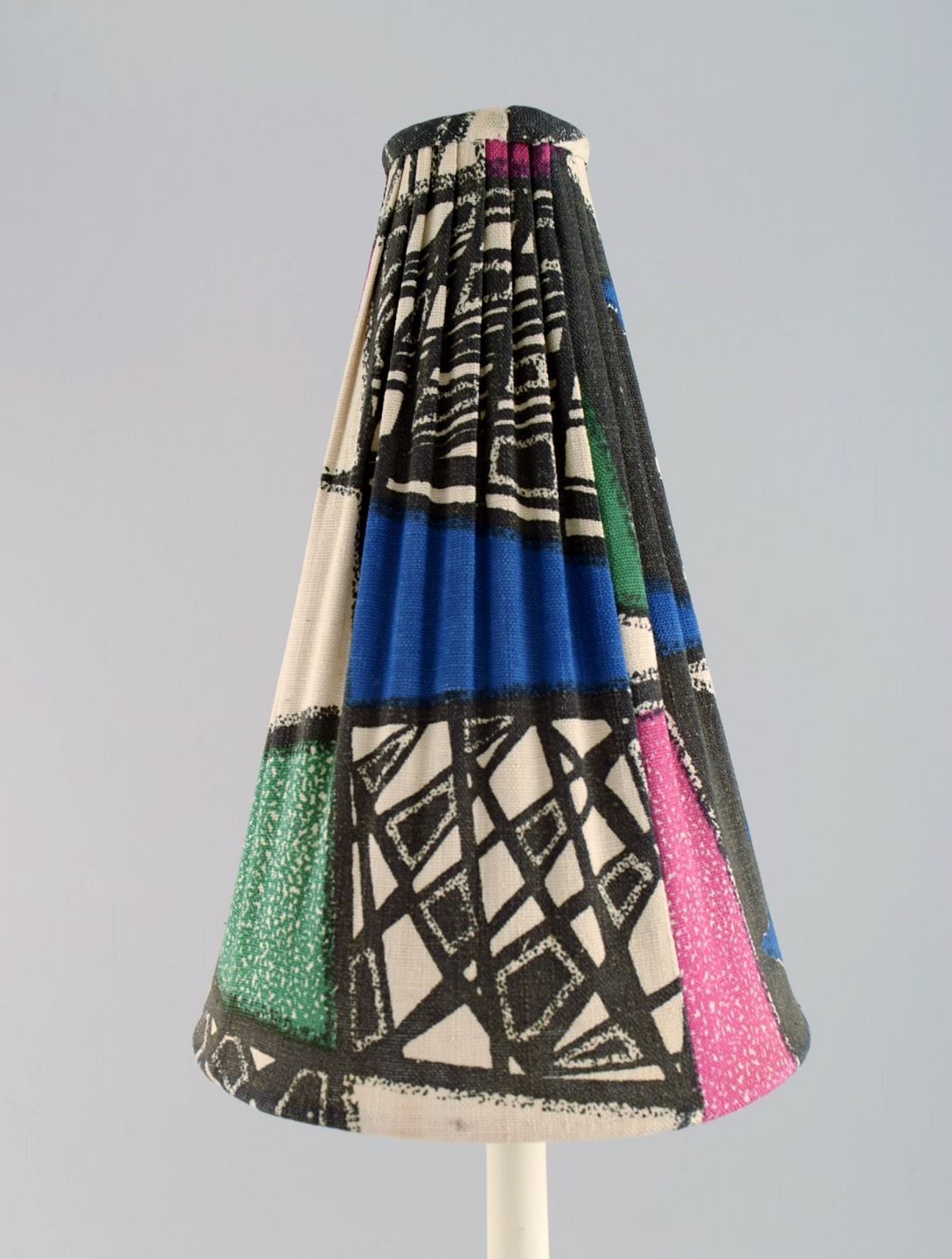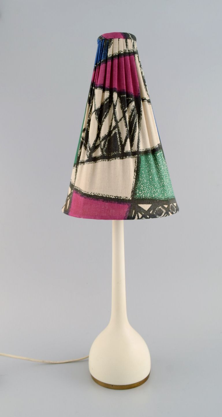 HANS-AGNE JAKOBSSON for A / B MARKARYD. Table lamp with colorful shade in fabric by Josef Frank. 1960's.