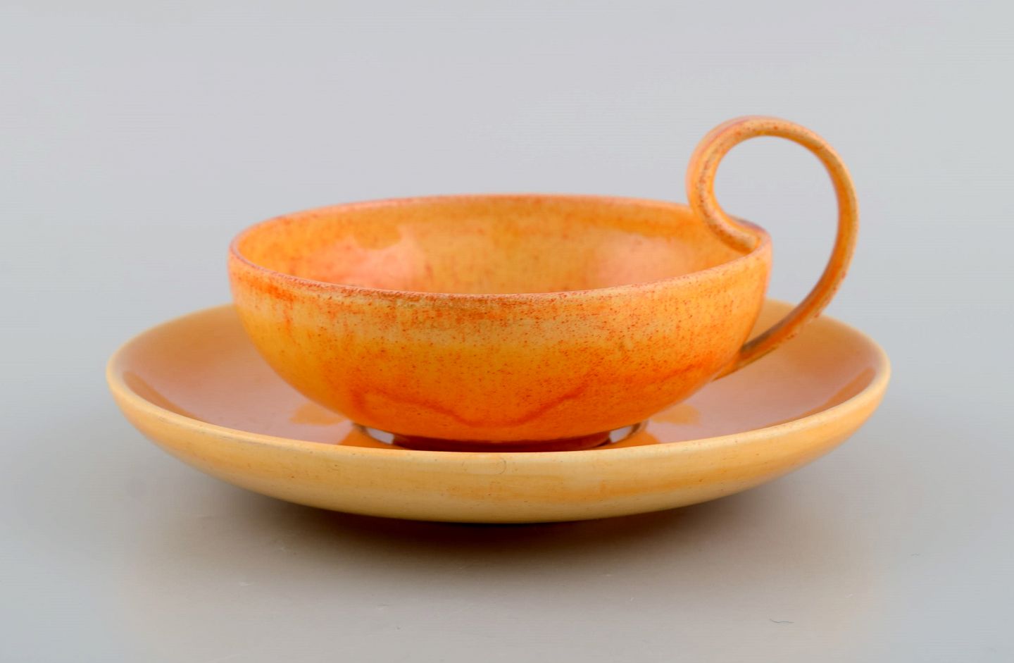 Kähler, HAK. Teservice til seks personer i glaseret stentøj. Smuk urangul glasur. Midt 1900-tallet.