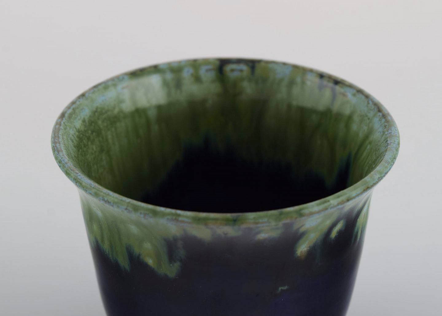 Carl Harry Stålhane (1920-1990) for Designhuset. Lille vase i glaseret keramik. Smuk glasur i grønne og blå nuancer. 1970'erne.
