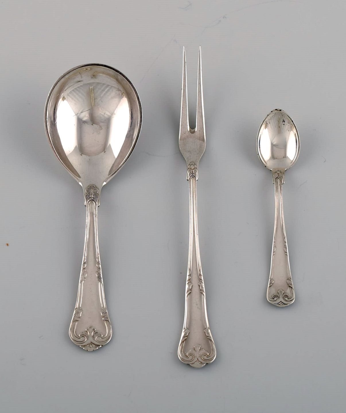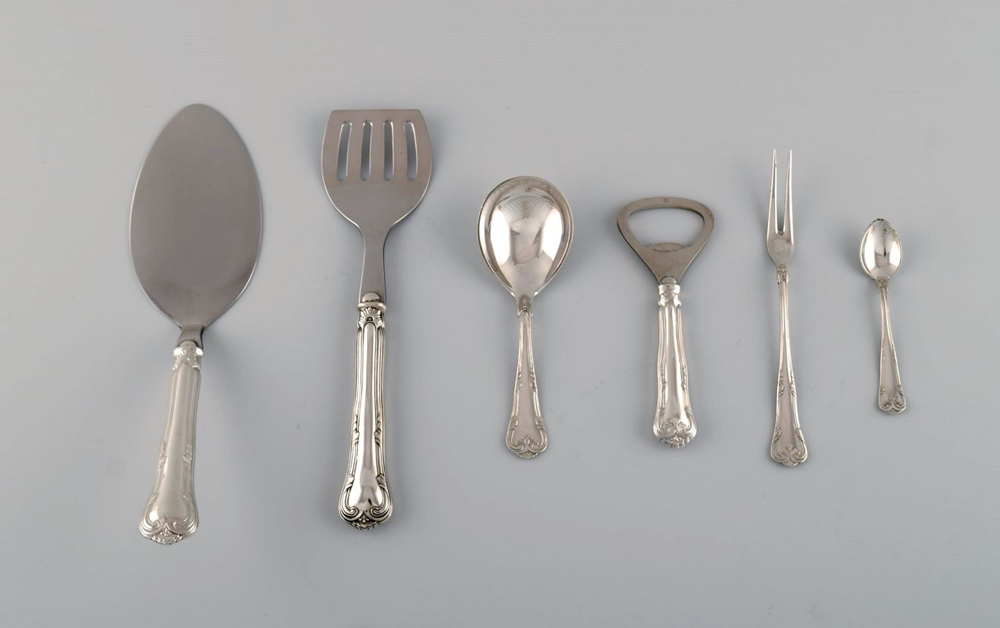Seks Cohr serveringsdele i sølv (830) og rustfrit stål. Midt 1900-tallet.
