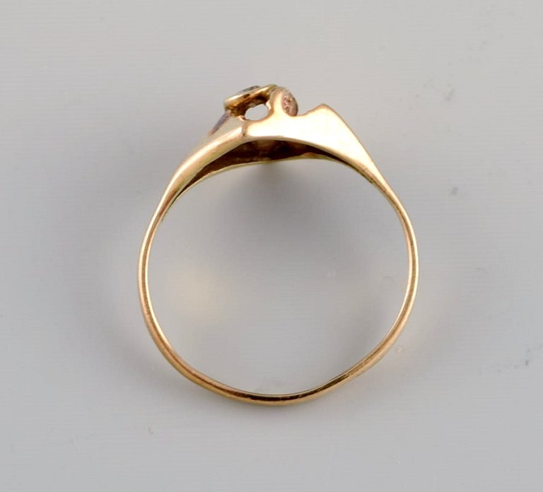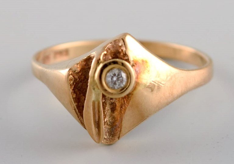 Skandinavisk guldsmed. Modernistisk ring i 14 karat guld prydet med brilliant. Midt 1900-tallet.