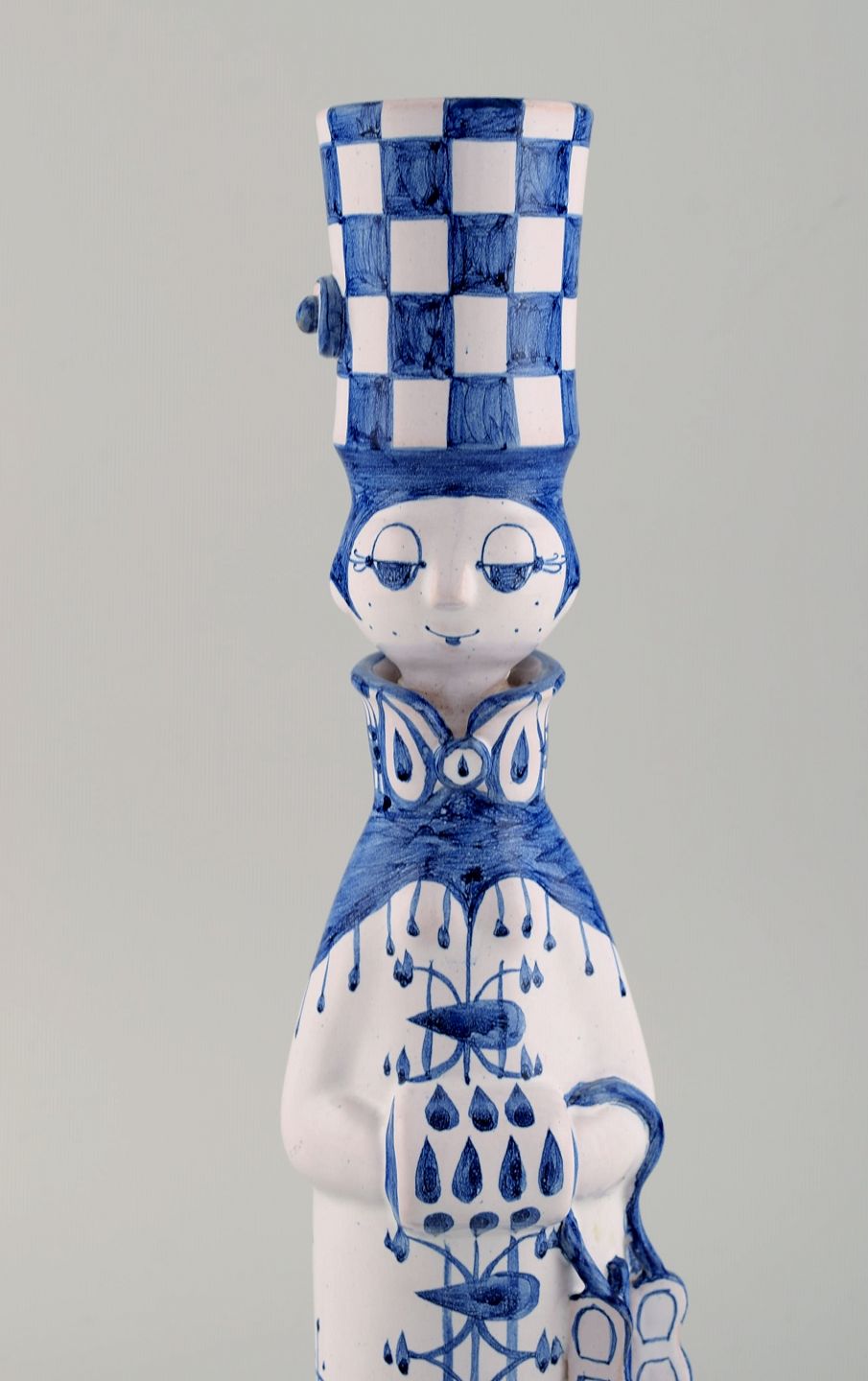 Bjørn Wiinblad unik keramik figur. "Vinter" i blå "Årstiderne" fra 1983. Signeret og dateret. Måler: 34 x 9,5 cm. I perfekt stand. Alle 4 figurer fra "Årstiderne" på lager.