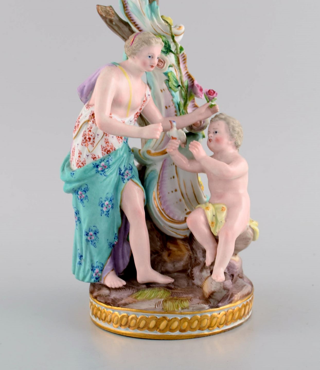 Antik Meissen lysestage i håndmalet porcelæn. Sent 1800-tallet. Måler: 29 x 13 cm. I flot stand. Signeret. 1. Sortering.