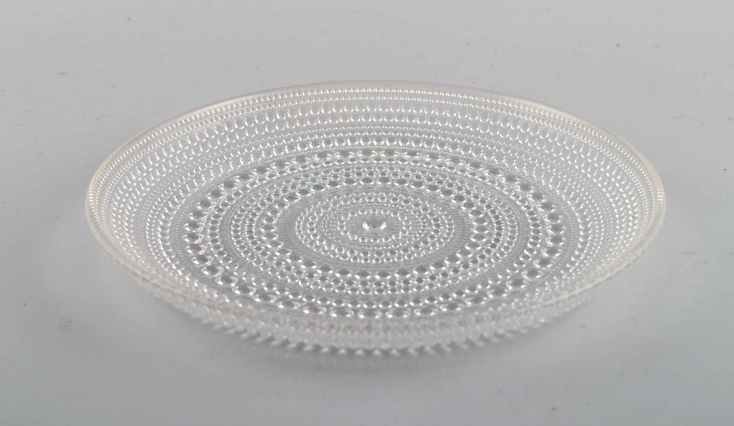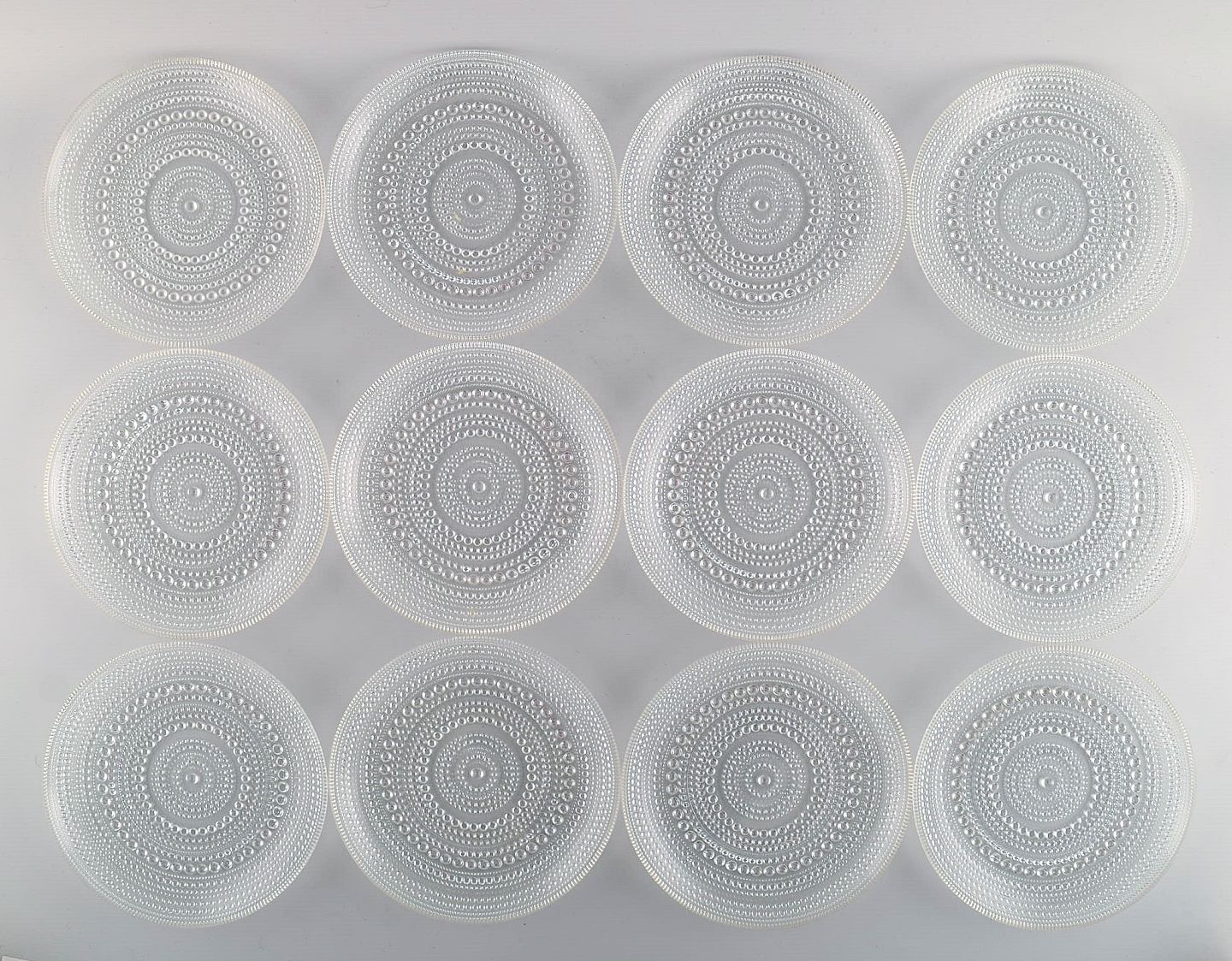 Oiva Toikka for Arabia. Tolv Kastehelmi tallerkener i klart kunstglas. Finsk design, 1970'erne.