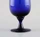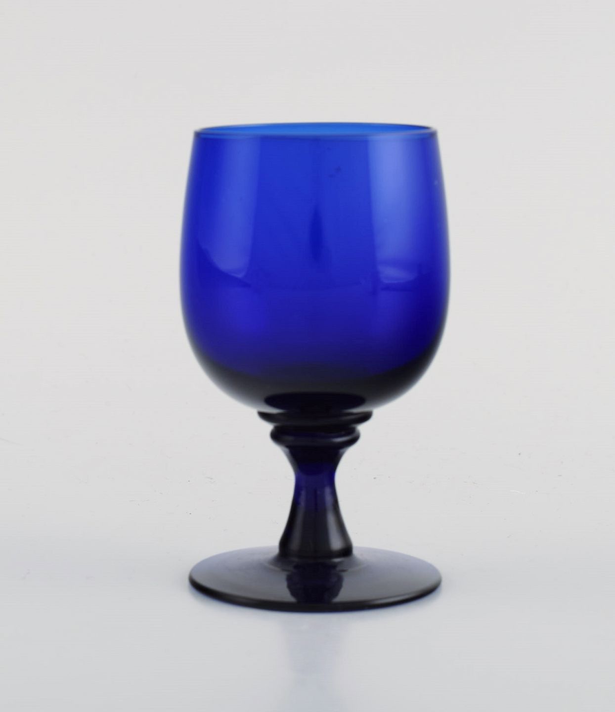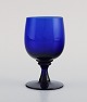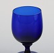 Monica Bratt for Reijmyre. Otte sherry glas i blåt mundblæst kunstglas. 1950'erne. Måler: 10 x 5,5 cm. I flot stand.
