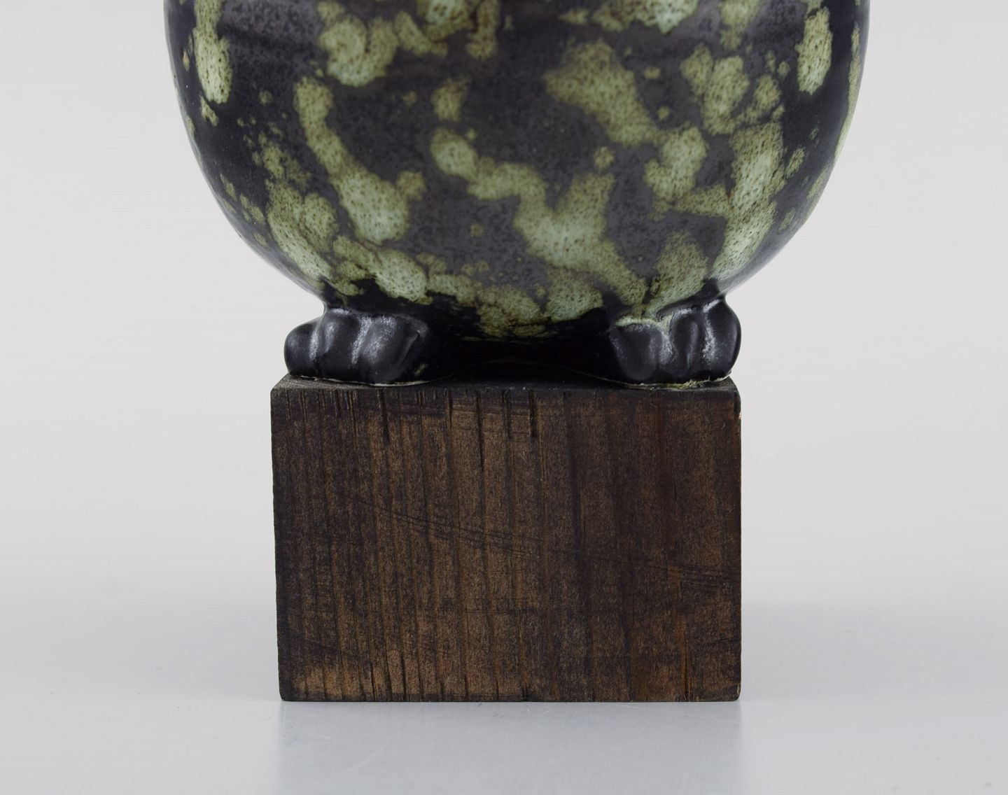 Sjælden figur, Lisa Larson for Gustavsberg. Sort fugl i glaseret keramik på træsokkel. 1990'erne.