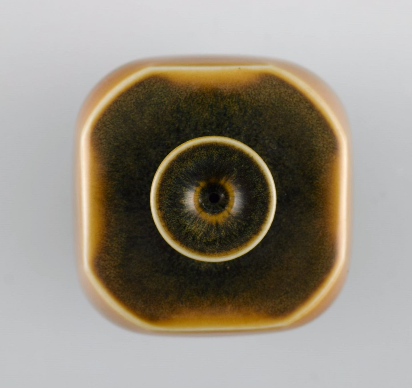 Berndt Friberg (1899-1981) for Gustavsberg Studiohand. Miniature vase i glaseret stentøj. Smuk glasur i brune nuancer. Midt 1900-tallet. Måler: 6,5 x 6,5 cm. I flot stand. Signeret.