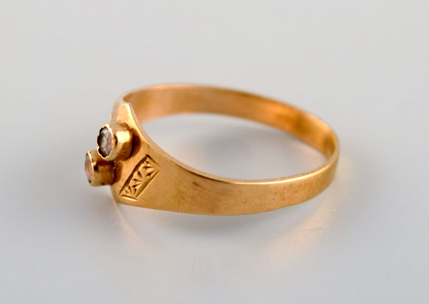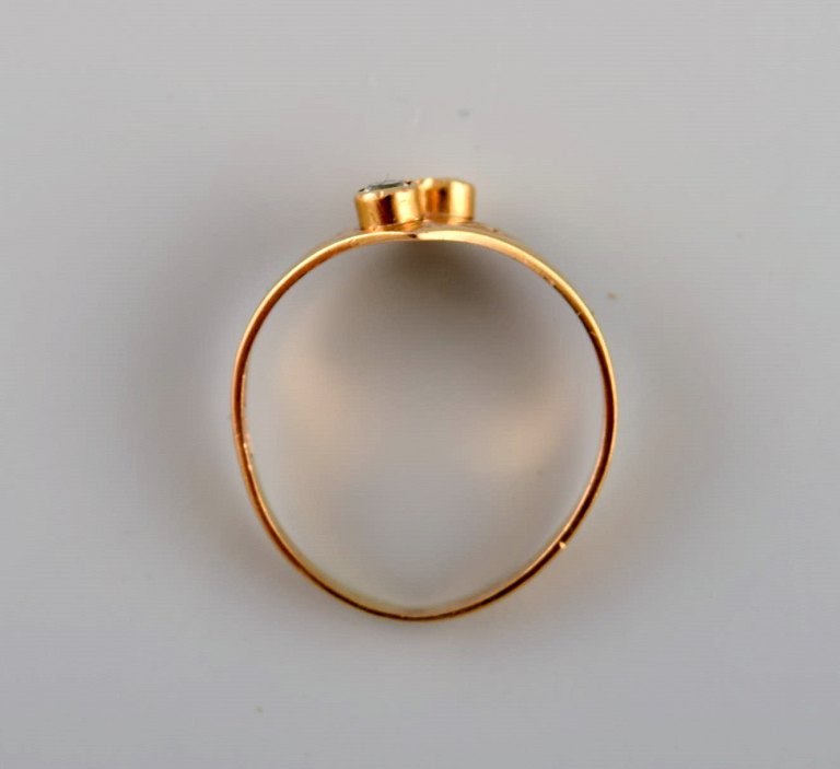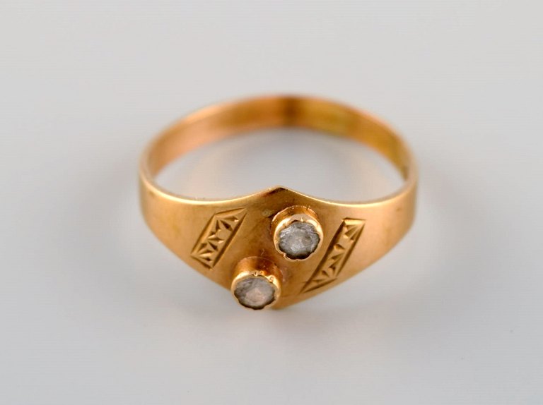 Svensk guldsmed. Modernistisk vintage ring i 18 karat guld prydet med halvædelsten. Dateret 1960.