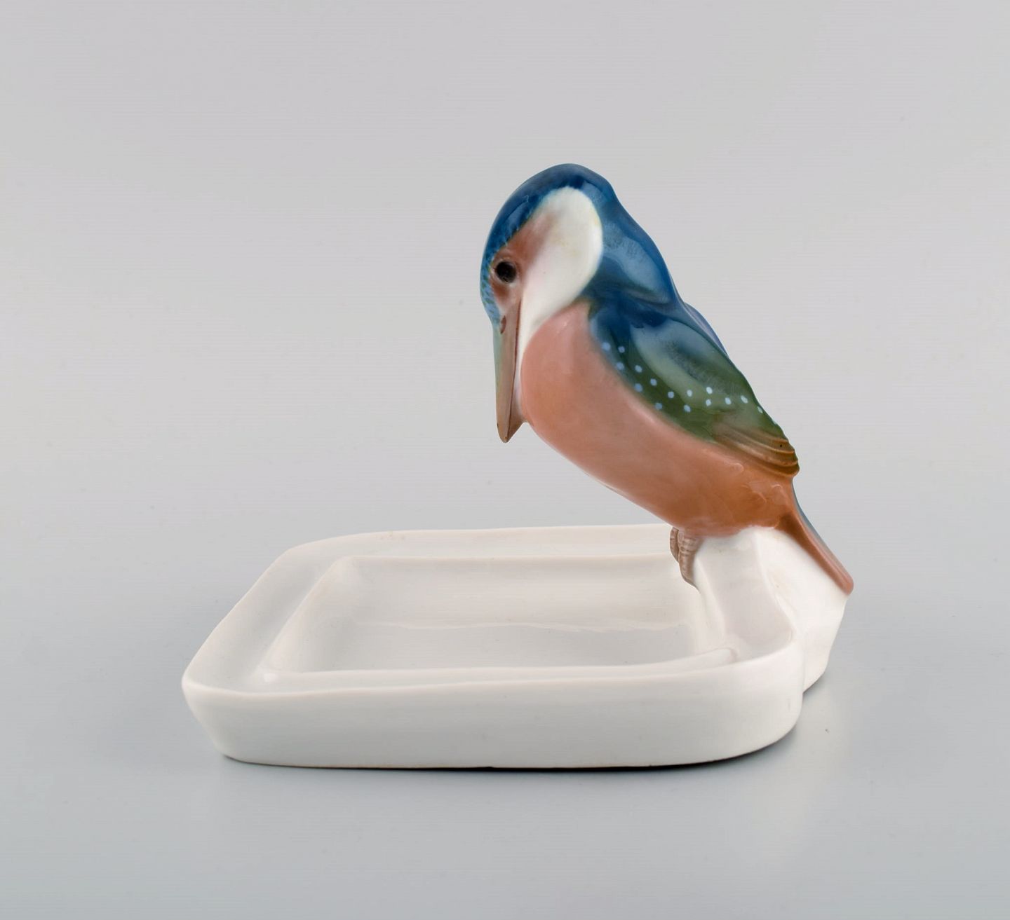 Paul Walther for Meissen. Art deco skål i håndmalet porcelæn modelleret med isfugl. 1930'erne. Måler: 14,5 x 14,5 x 13 cm. I flot stand. Stemplet. 1. Sortering.