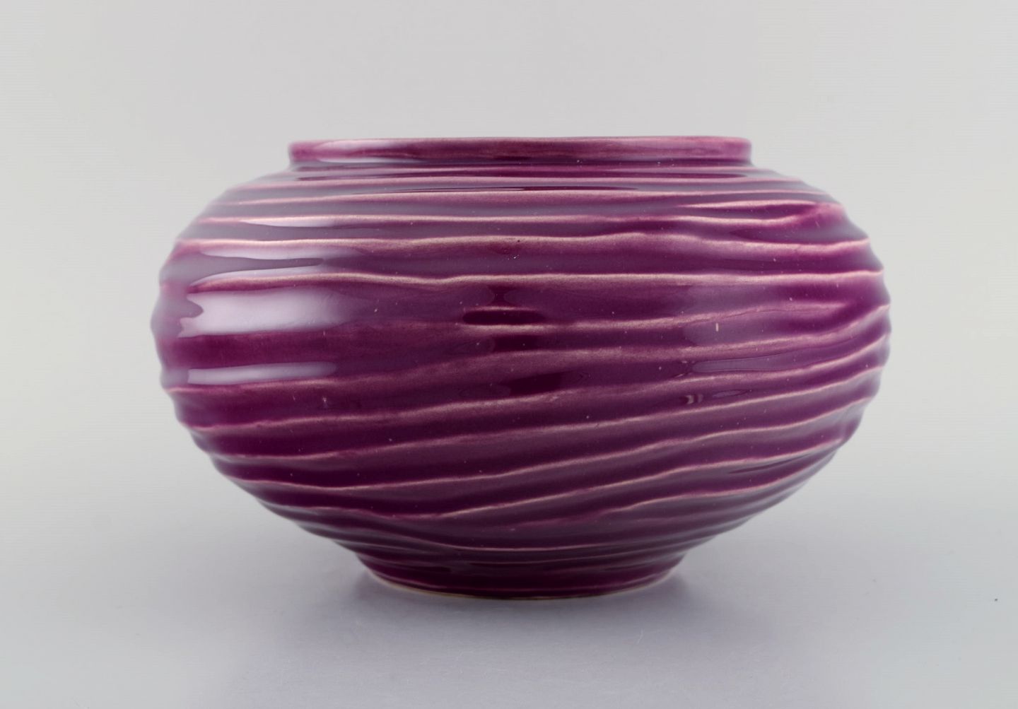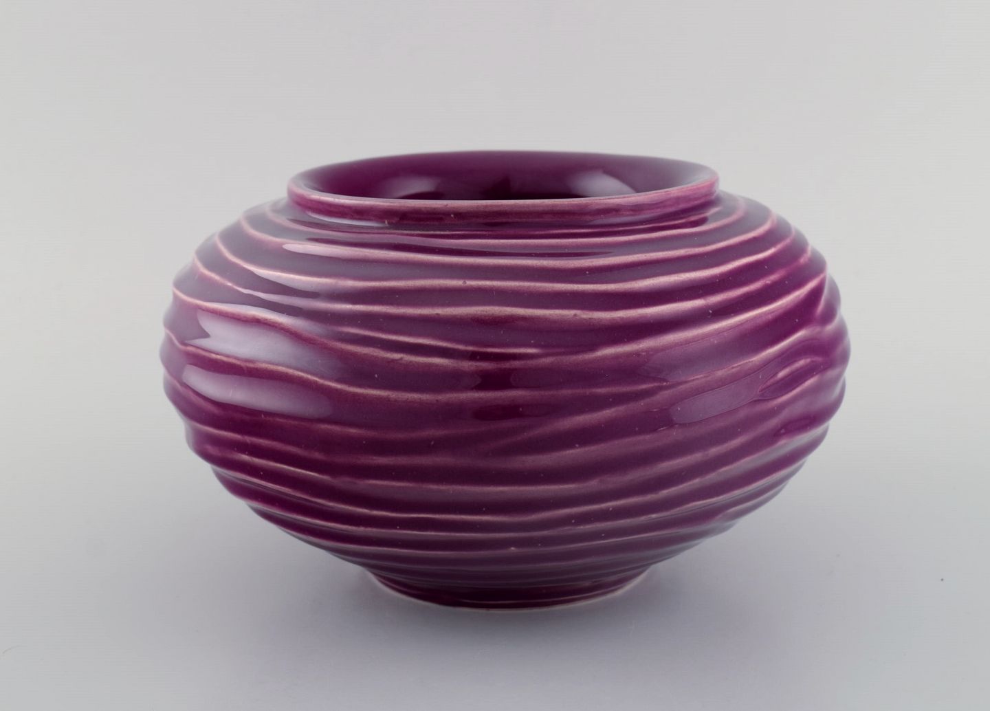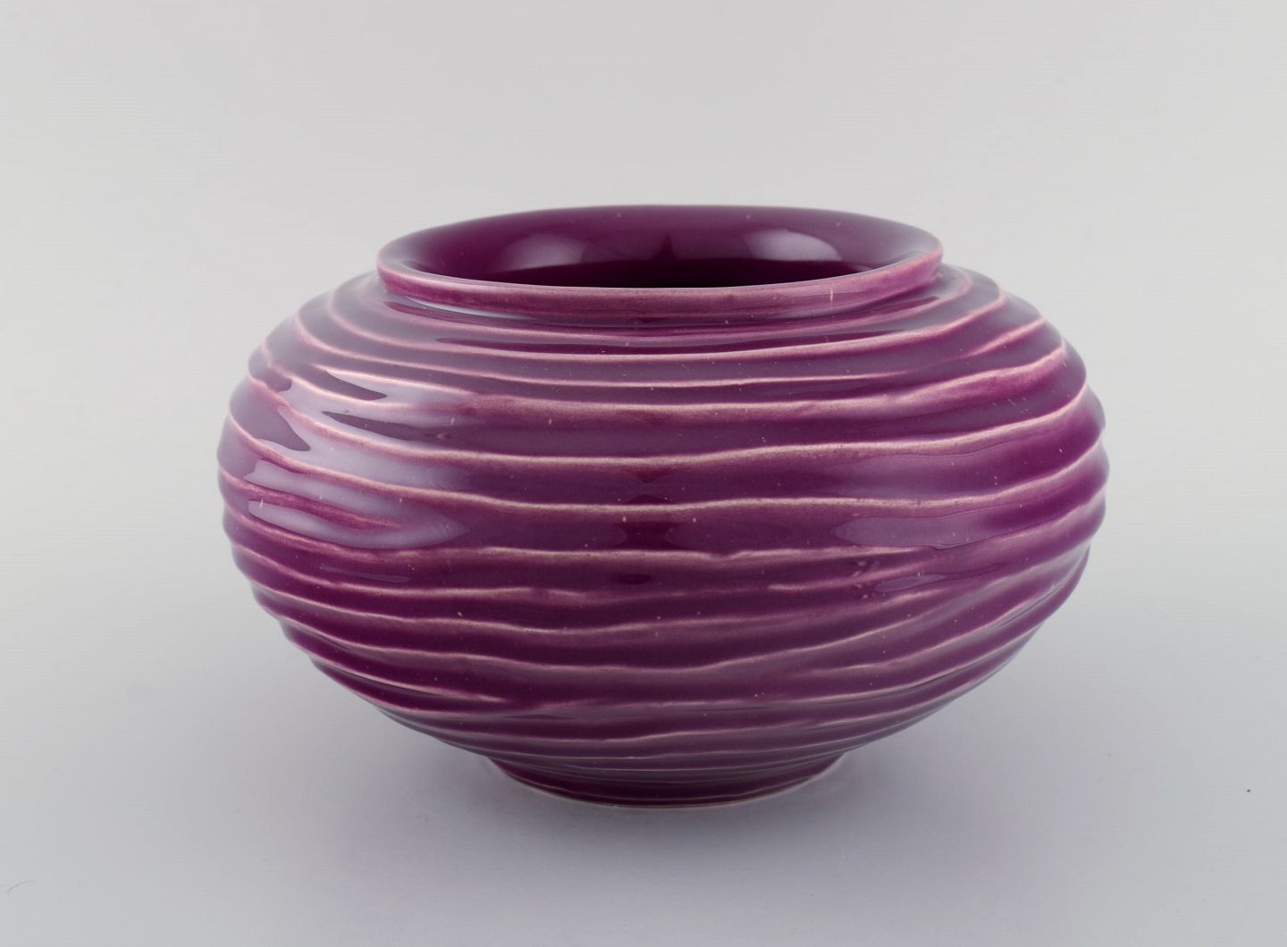 Sjælden Zsolnay vase i glaseret keramik. Smuk glasur i lilla nuancer. Midt 1900-tallet. Måler: 22 x 13 cm. I flot stand. Stemplet.