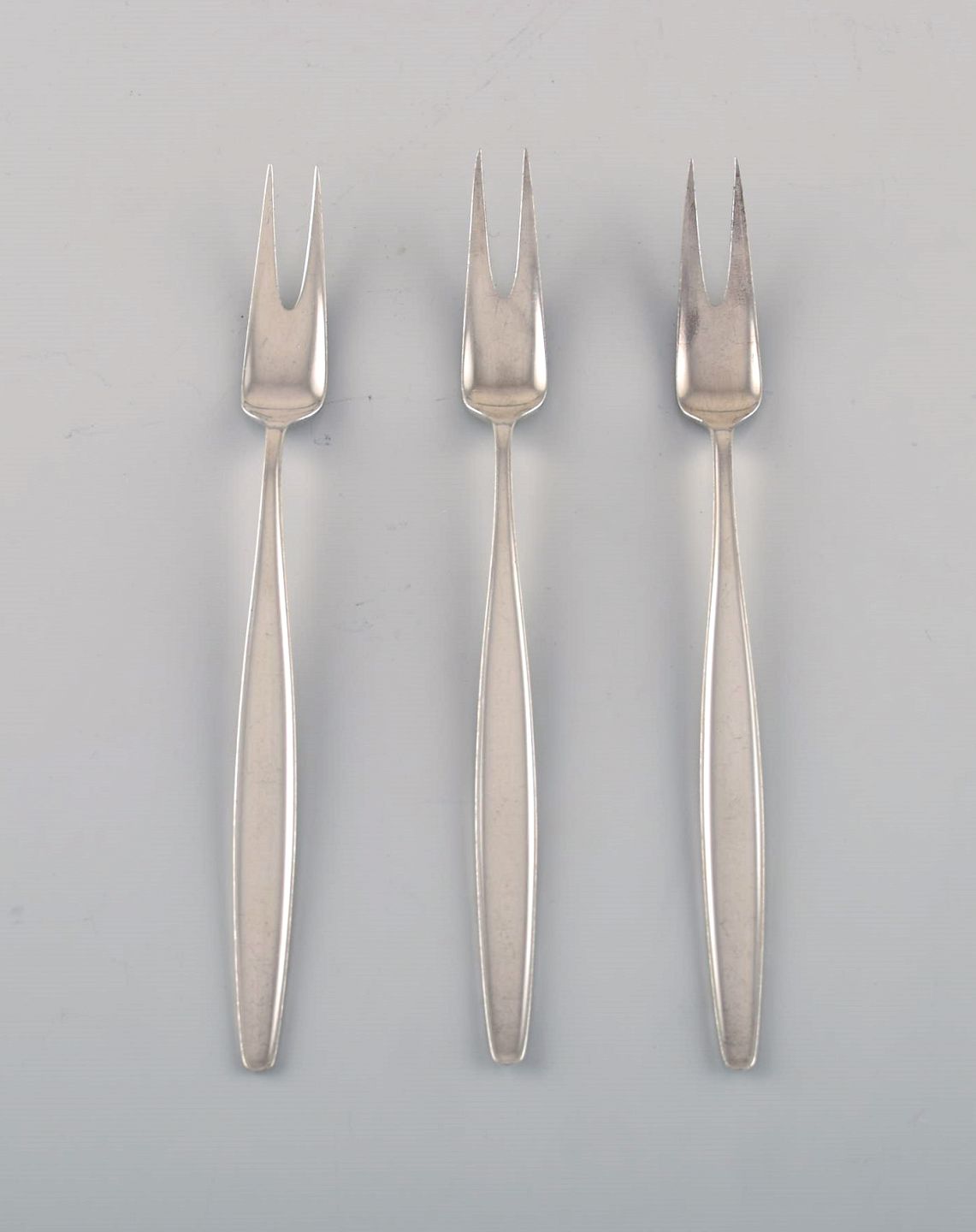 Tre Georg Jensen Cypress pålægsgafler i sterlingsølv.