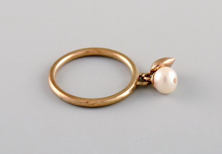 Skandinavisk guldsmed. Vintage ring i 8 karat guld prydet med kulturperle. Midt 1900-tallet.