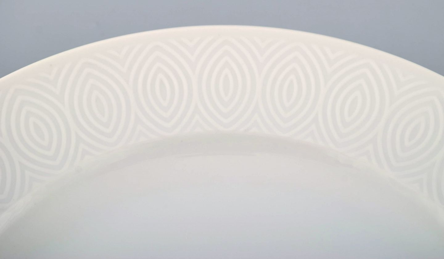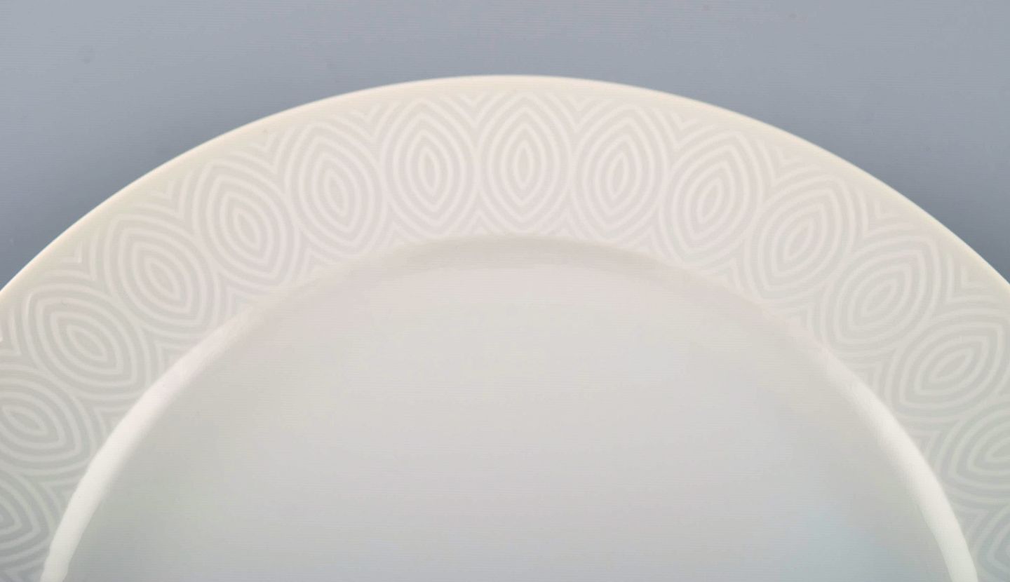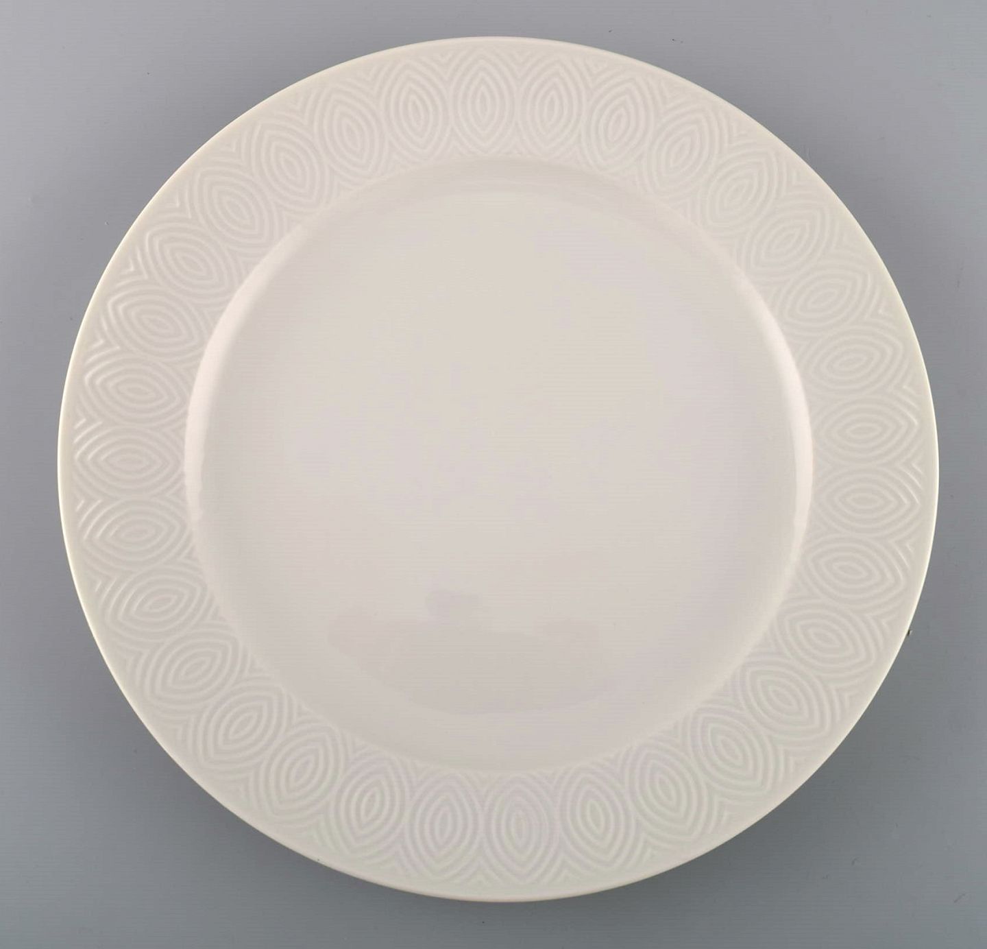 Royal Copenhagen. Salto Stel, Hvidt. 15 middagstallerkener. 1960'erne. Diameter: 25 cm. I flot stand. 1. sortering. Tegnet af Axel Salto i 1956.