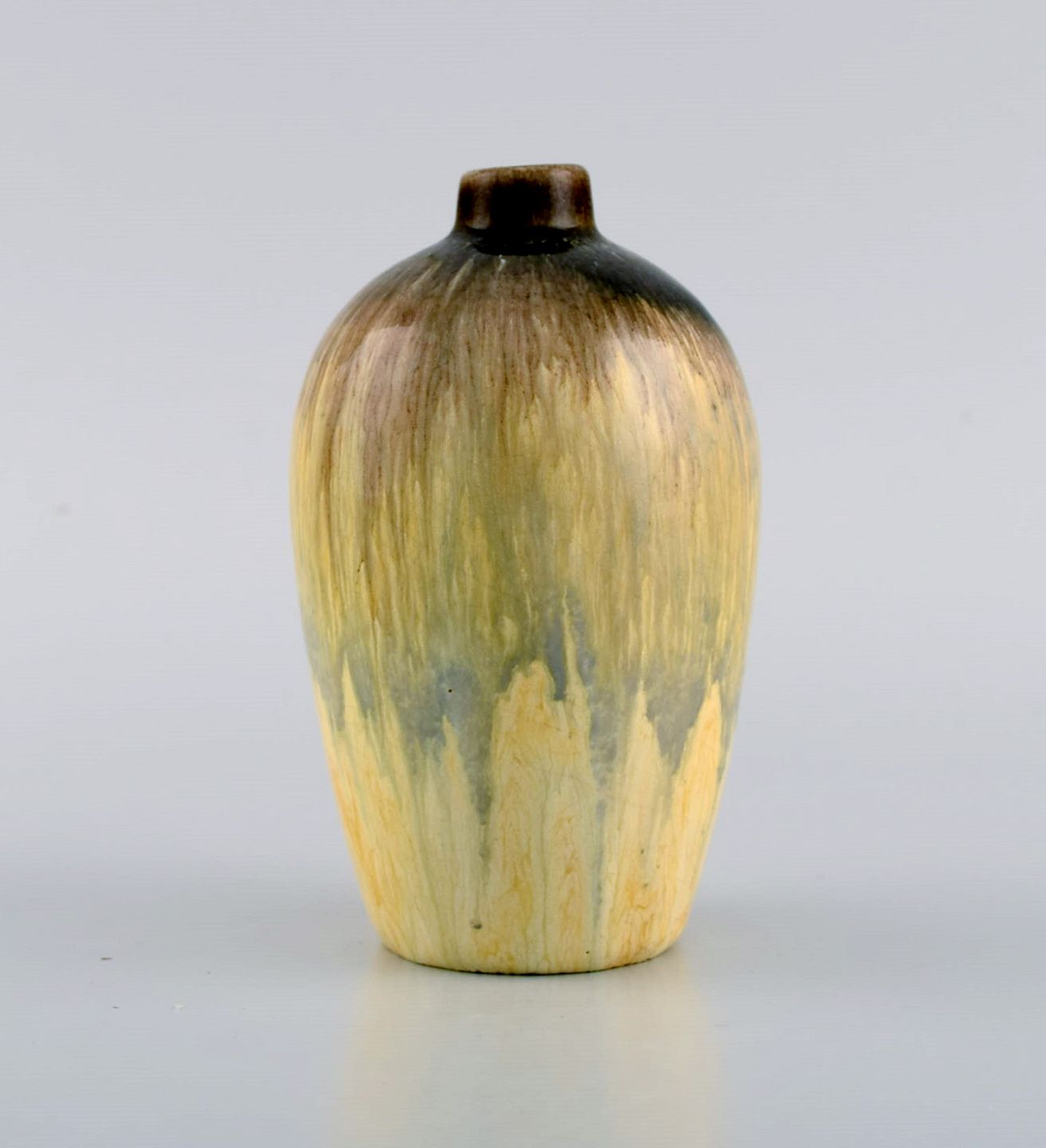 Pieter Groeneveldt (1889-1982), hollandsk keramiker. Unika vase i glaseret keramik. Smuk glasur i gule og sorte nuancer. Midt 1900-tallet.