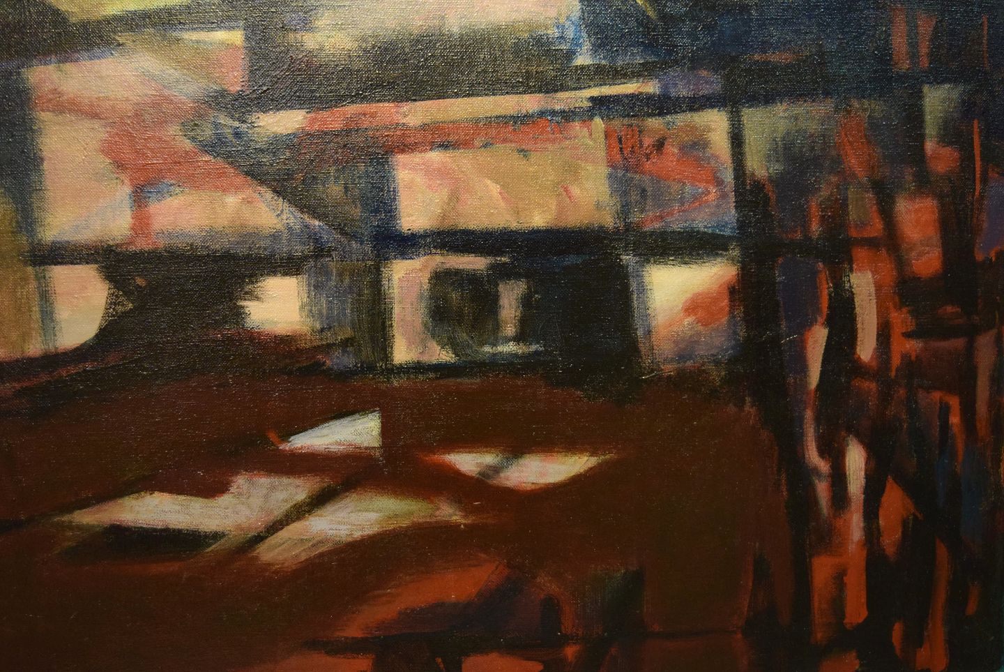 Albert Ferenz (1907-1994), Tyskland. Olie på lærred. Abstrakt komposition. "Spiegelung". Dateret 1974. Lærredet måler: 90 x 74 cm. Rammen måler: 7 cm. I flot stand. Signeret og dateret.